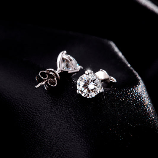 1 carat moissanite s925 sterling silver classic simple basic super shiny three-claw earrings