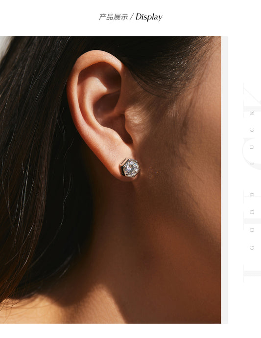 1 carat moissanite s925 silver niche design noble hexagonal sparkling diamond earrings