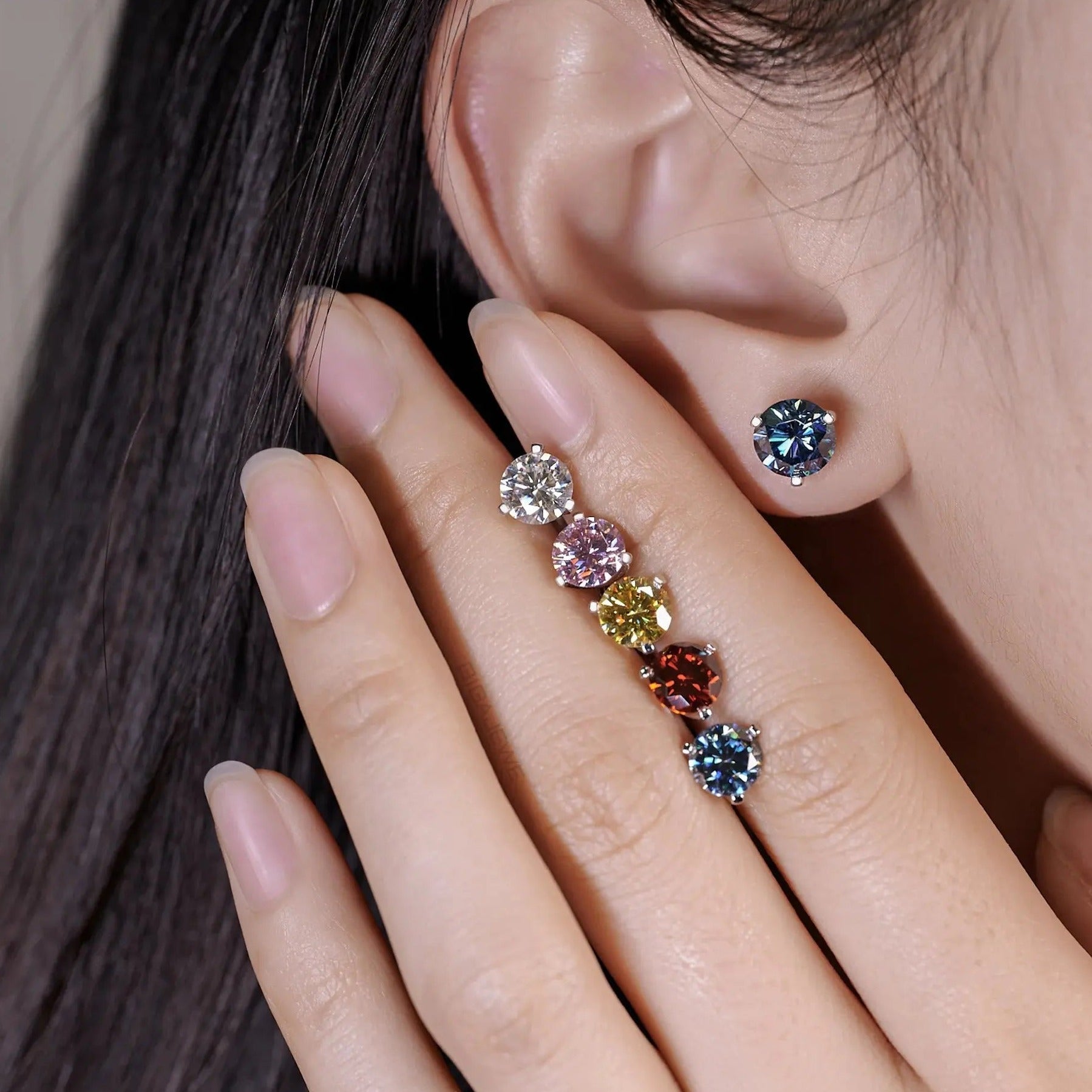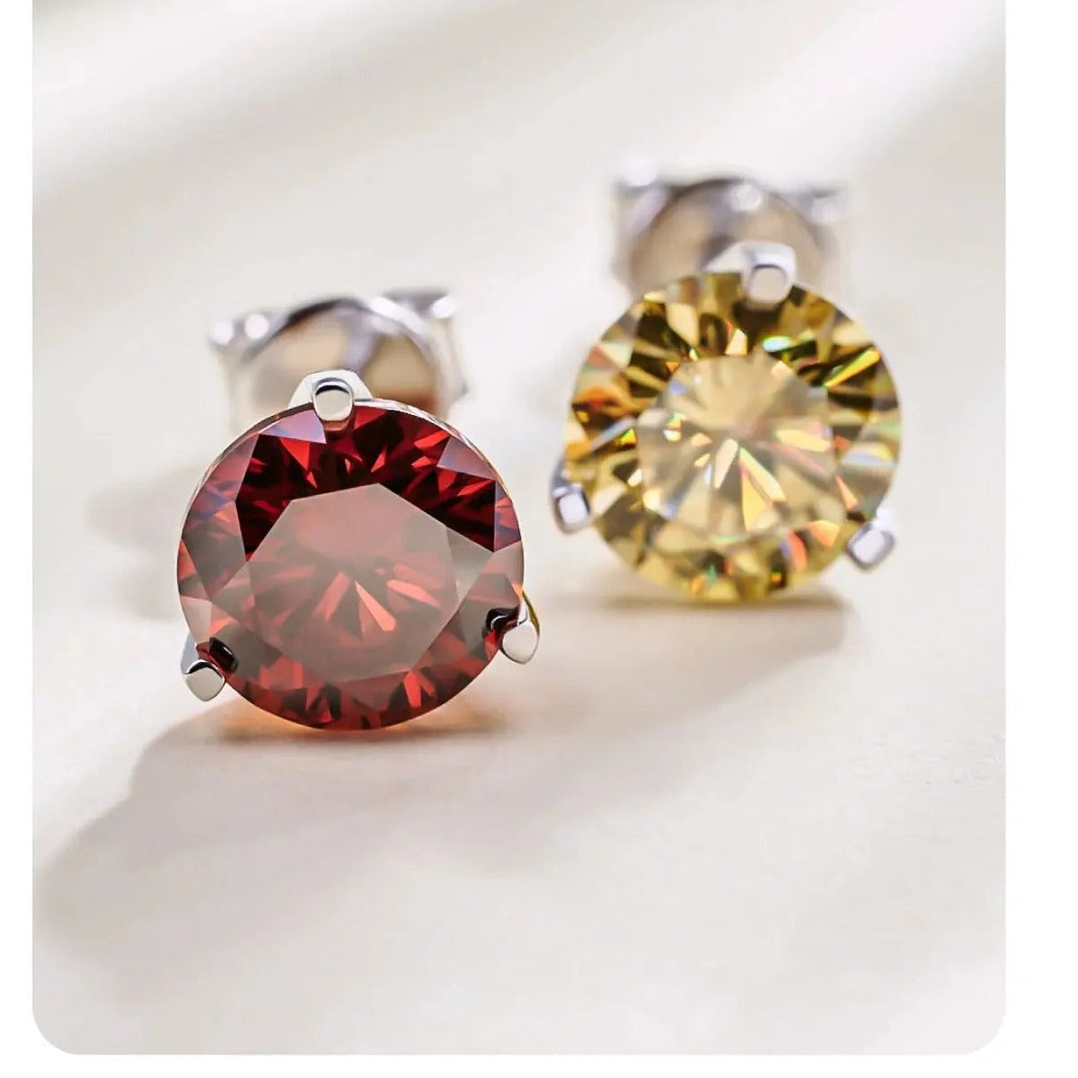 These stud moissanite earrings equal an impressive 3 carats. or 1.5 carat each! Easily one of the most impressive moissanite earrings that Luxus Moissanite sells. Not only that but they come in a variety of colored moissanite stones. These are a new concept and are rapidly selling out!