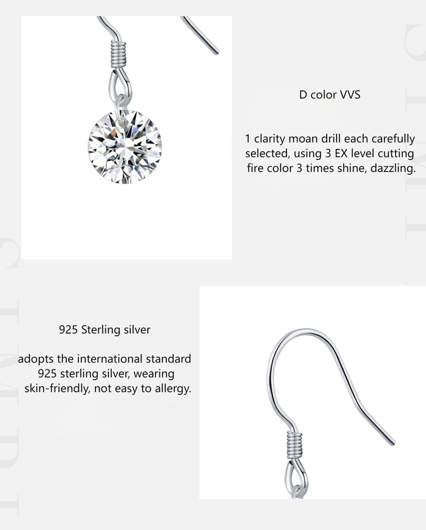 1 carat moissanite earrings s925 sterling silver flashing elegant earrings for women