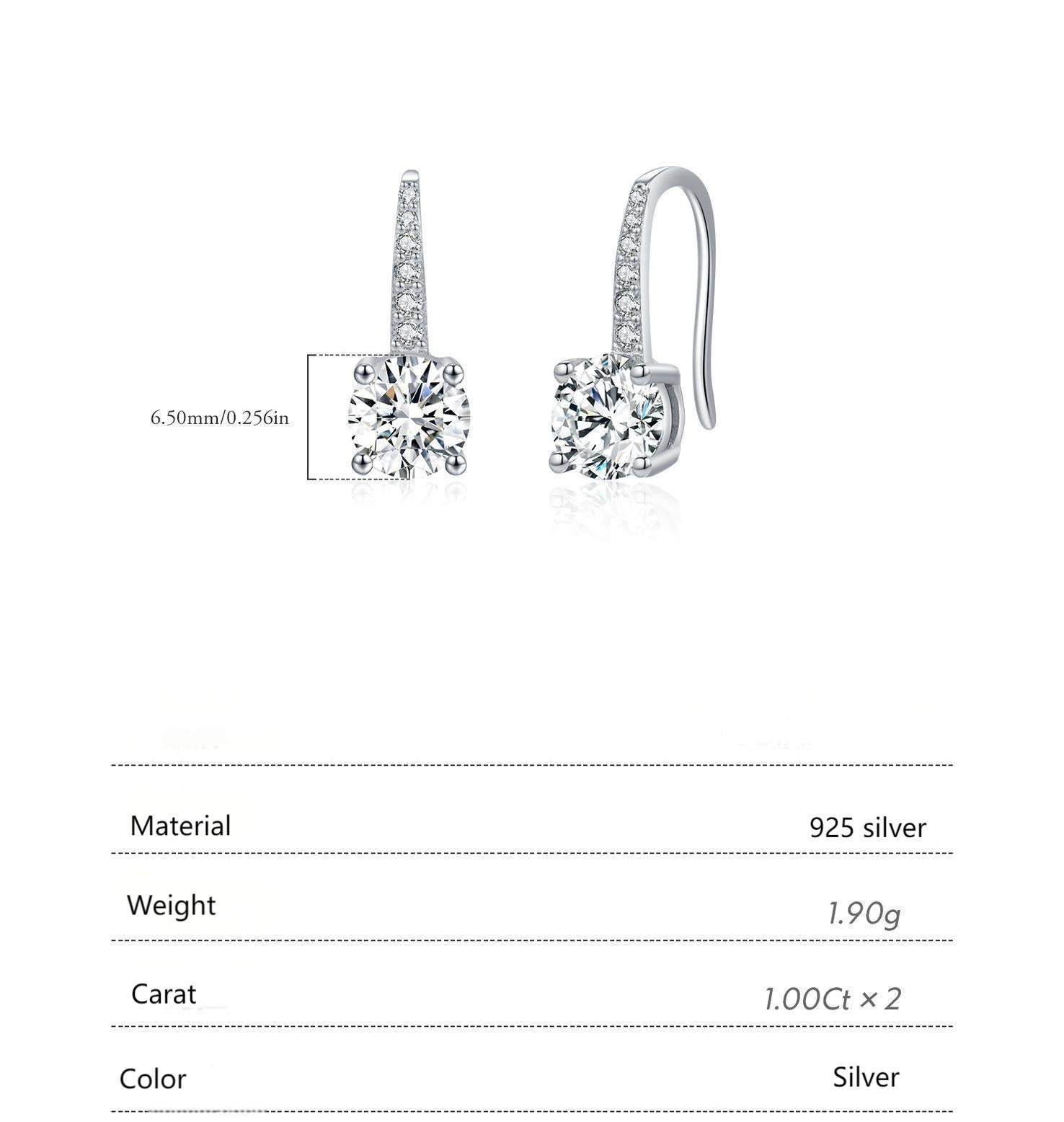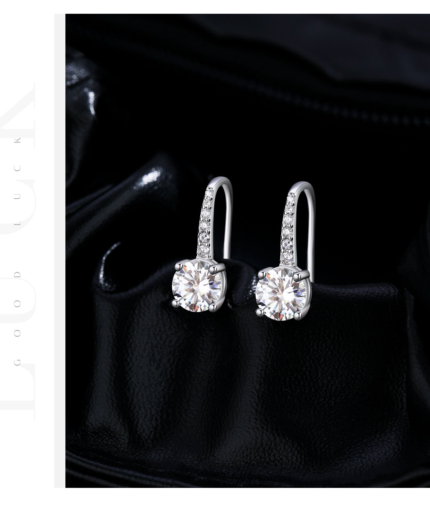 Expertly crafted with 1 carat moissanite and s925 silver, these French elegant diamond earrings feature a classic four-claw design that exudes timeless beauty. These earrings will add a touch of glamour and sophistication to any outfit, making them a must-have for any jewelry collection.