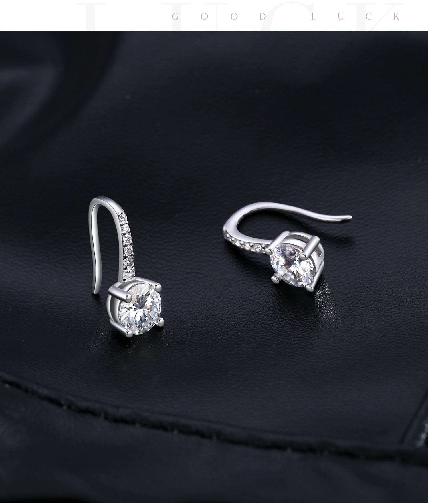 1 carat moissanite s925 silver French elegant four-claw shining diamond earrings ear hooks