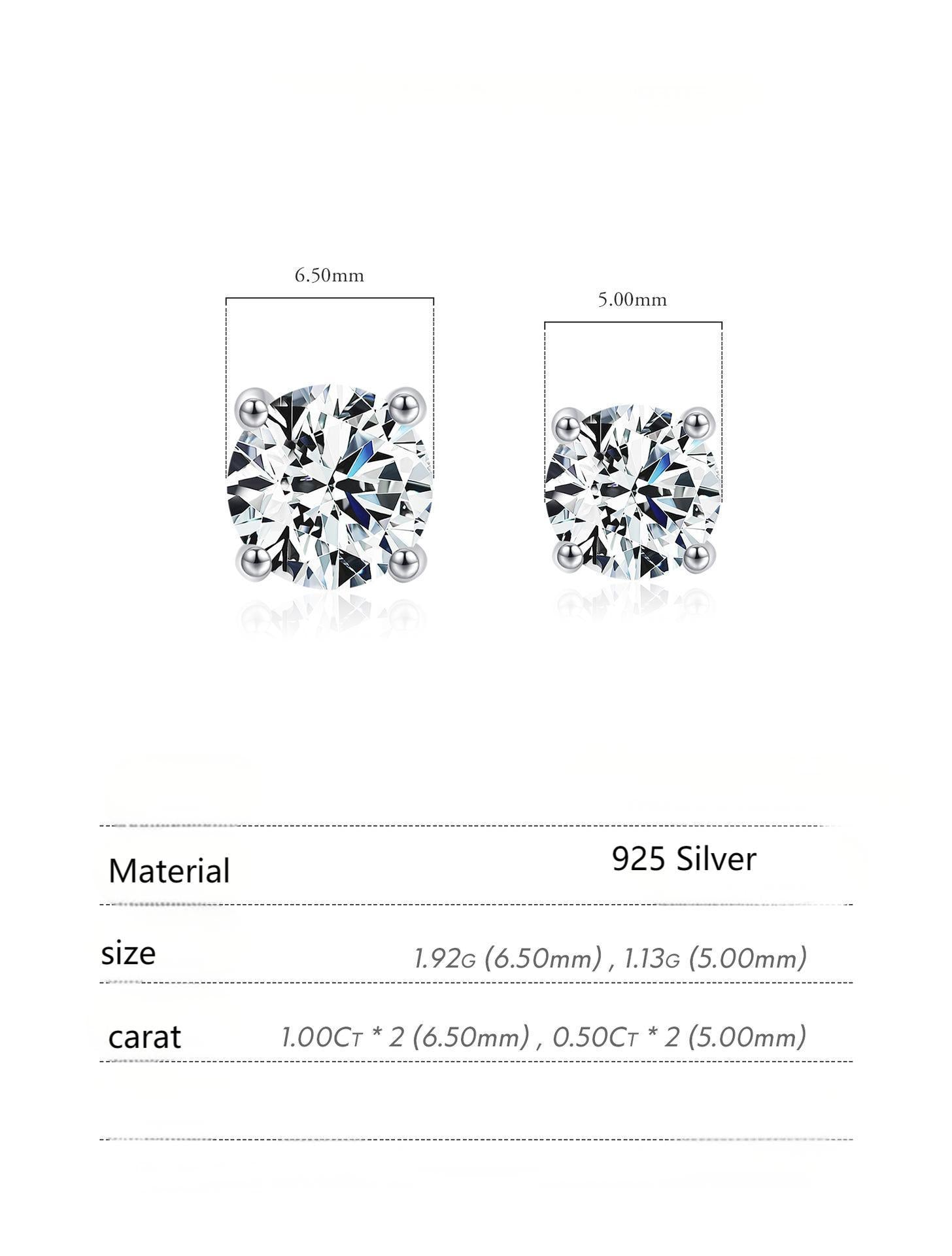 Color: S925 sterling silver (0.50Ct * 2), S925 sterling silver (1.00Ct * 2)