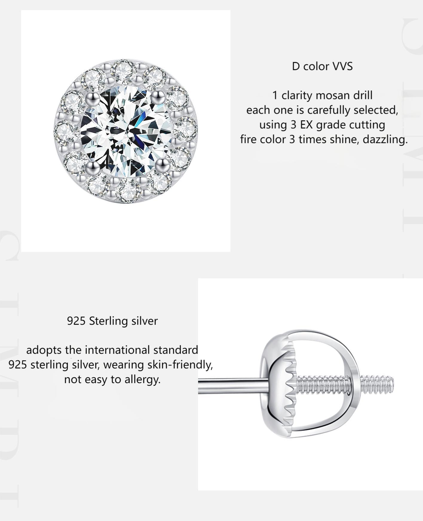 1 carat moissanite s925 sterling silver full diamond shining earrings elegant earrings