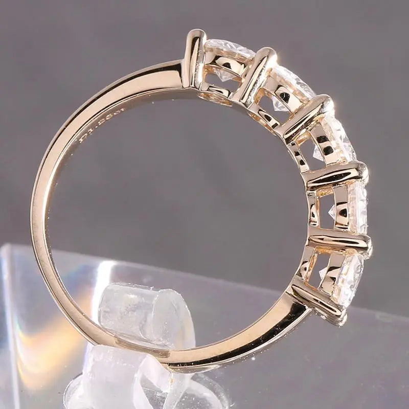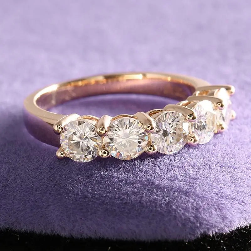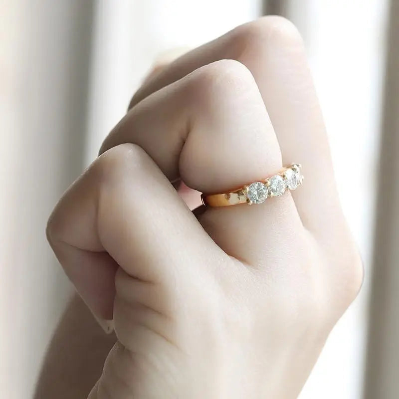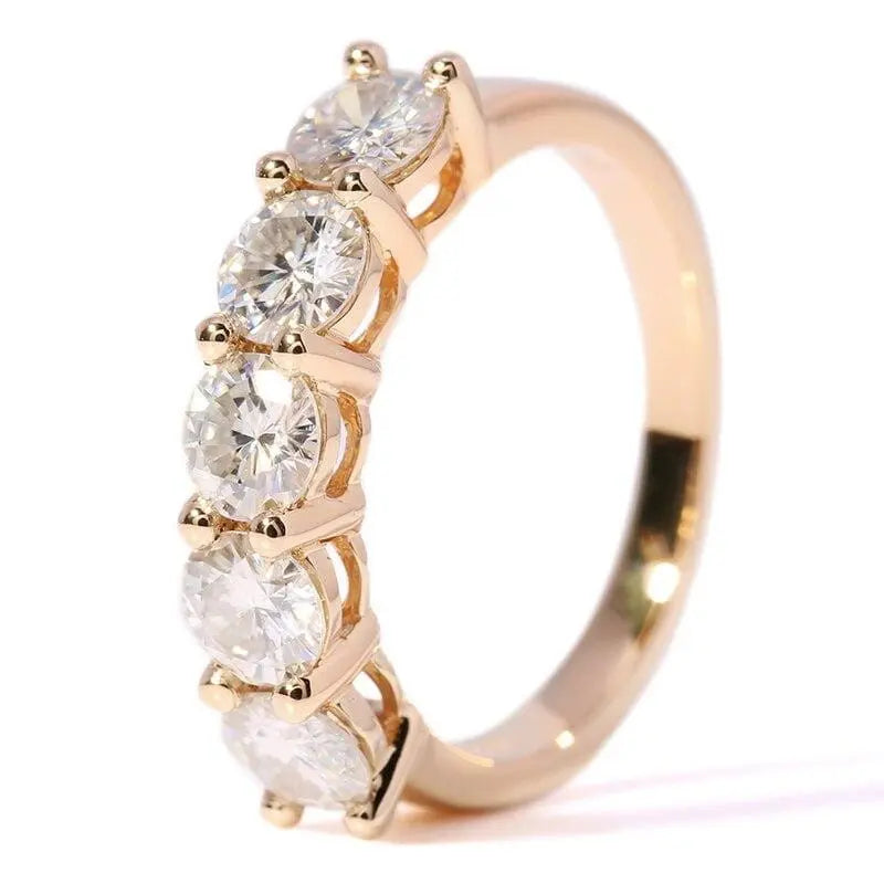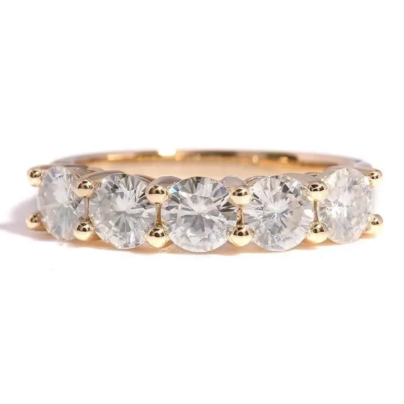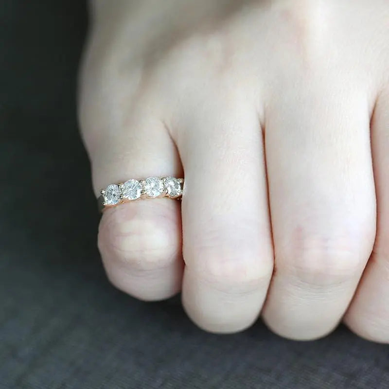 Stone Size: This moissanite anniversary ring / wedding band is made with five 0.25ct stones. The total carat weight of the ring is 1.25 carat.
