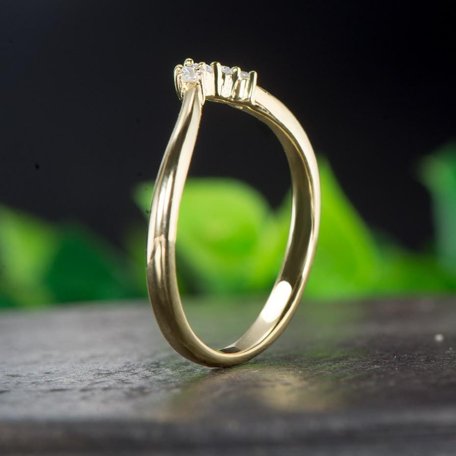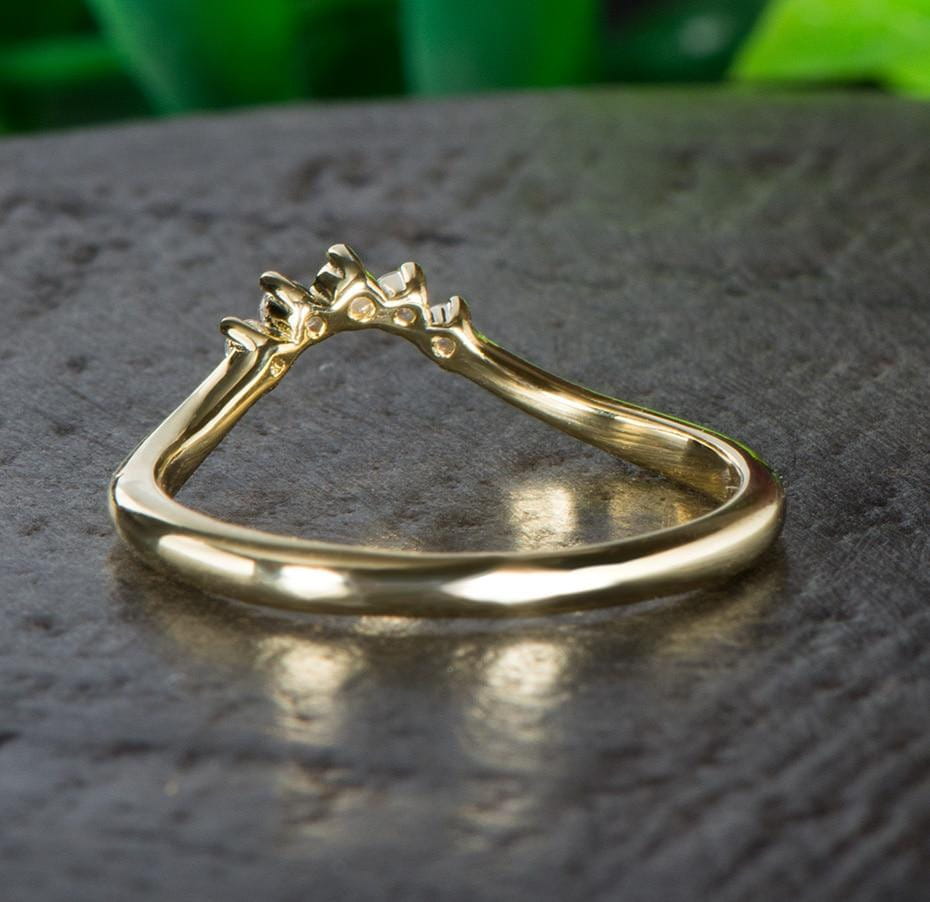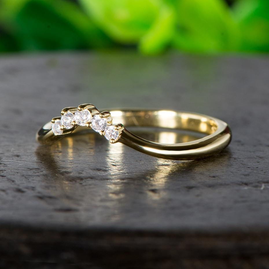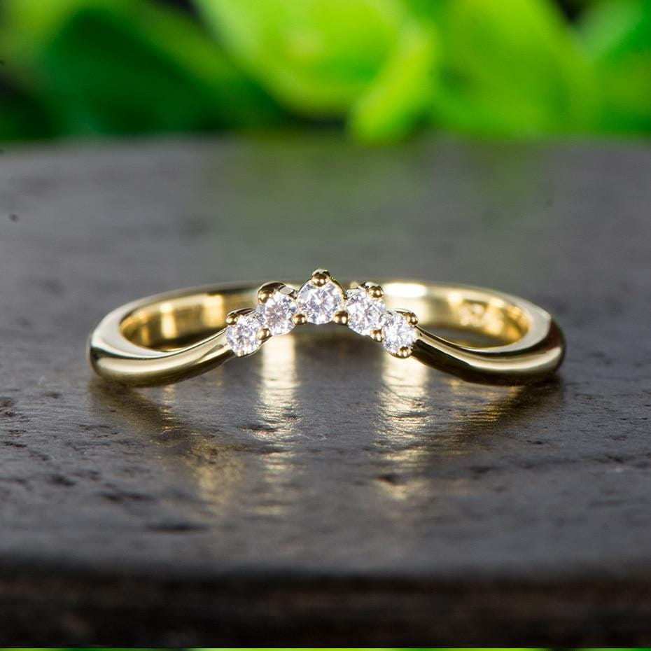 Sometime the most beautiful jewelry is the most subtle and simple. Nothing compares to a golden band with flawless moissanite gemstones put inside. It's a timeless moissanite wedding band. that always becomes a favorite.