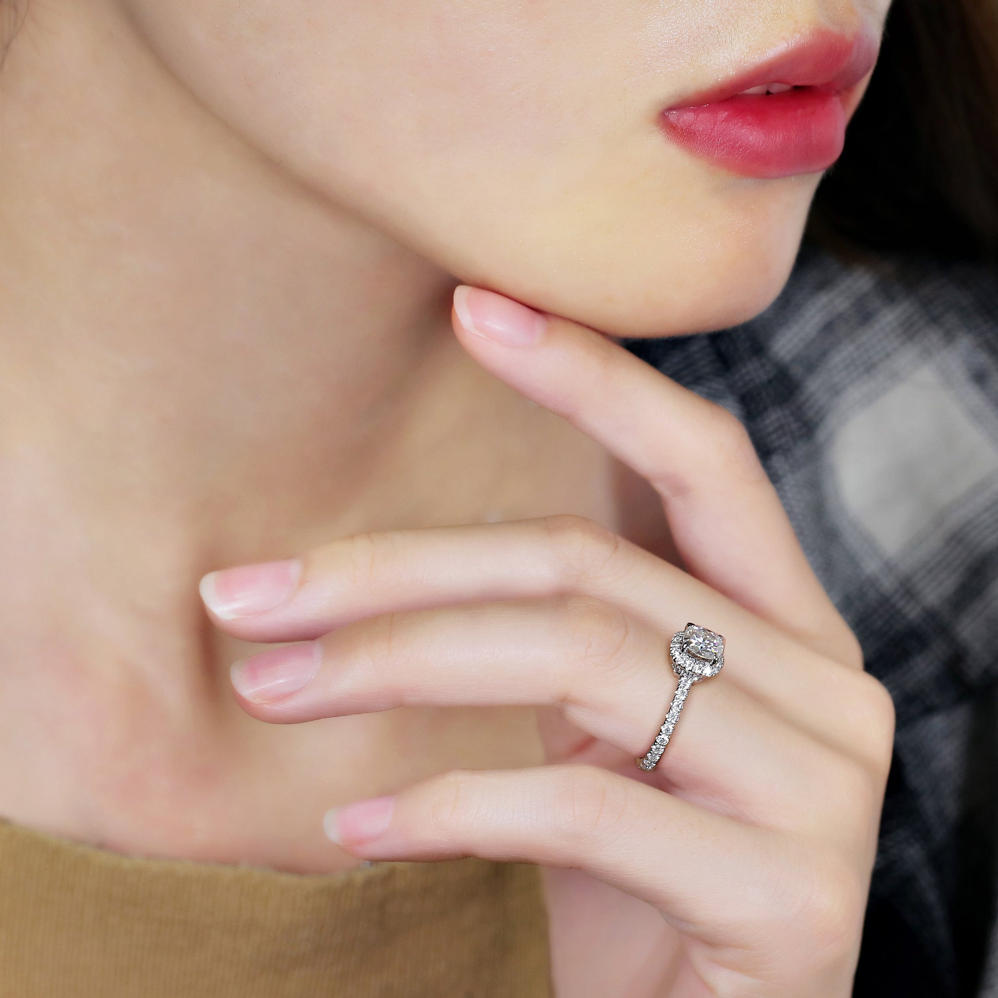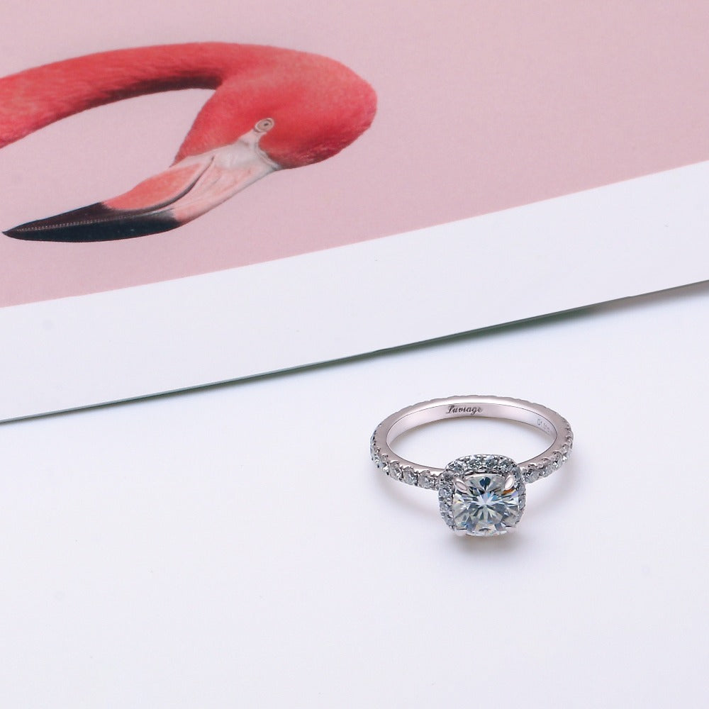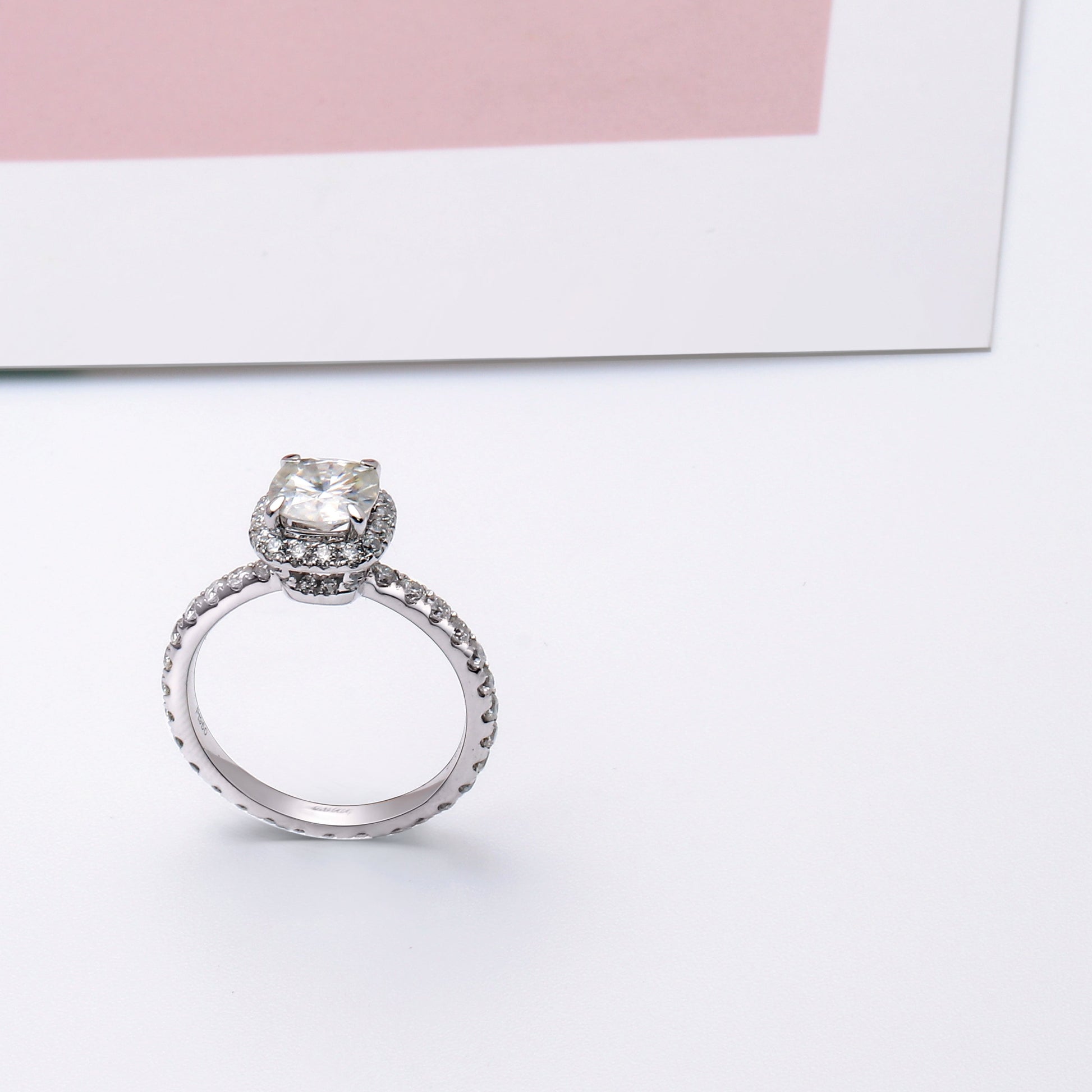 Engagement Ring 10k White Gold Halo Moissanite Ring 1ct Center Stone
