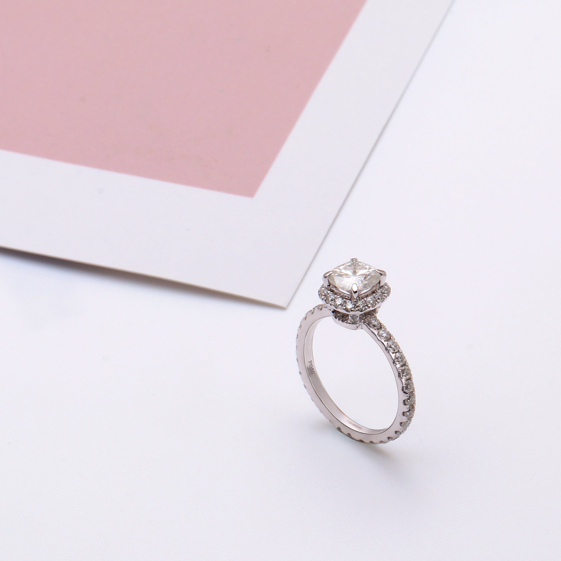 Engagement Ring 10k - White Gold Halo Moissanite Ring 1ct Center Stone