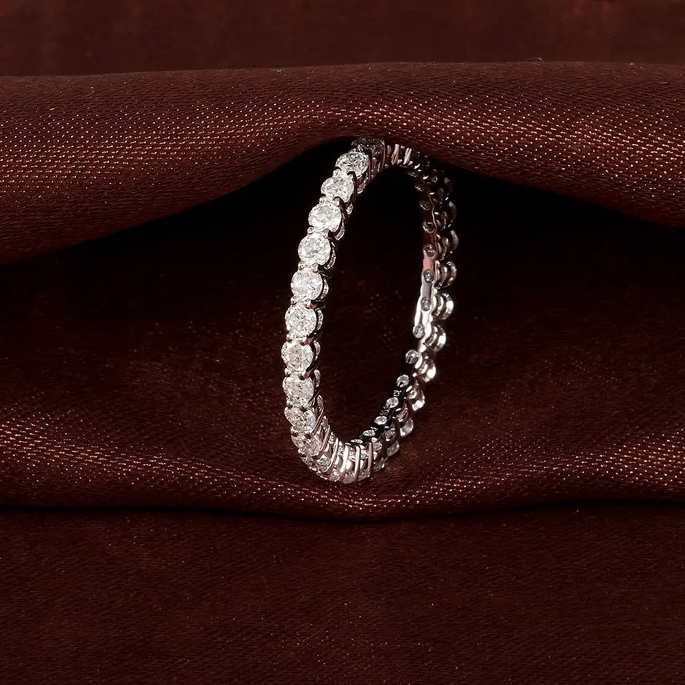 The ring's moissanite stones. carefully selected for their excellent cut. provide a dazzling fire and brilliance comparable to diamonds while offering an ethical and sustainable choice. With its affordable luxury. this best eternity ring is perfect for those who want exceptional quality without a high price tag. Moissanite's durability makes it ideal for daily wear. so you can wear it confidently. knowing it will stay as stunning as the day you first put it on.
