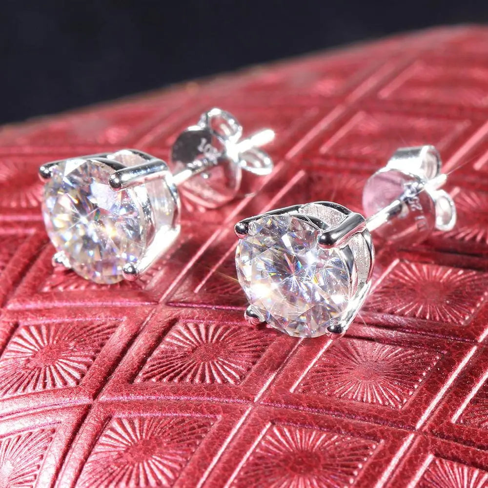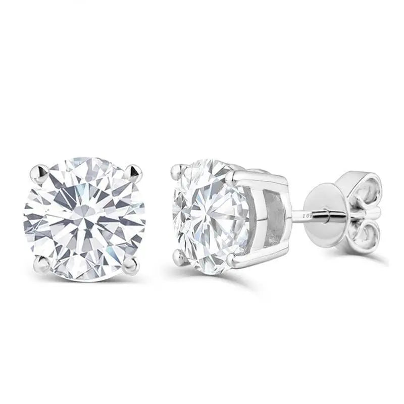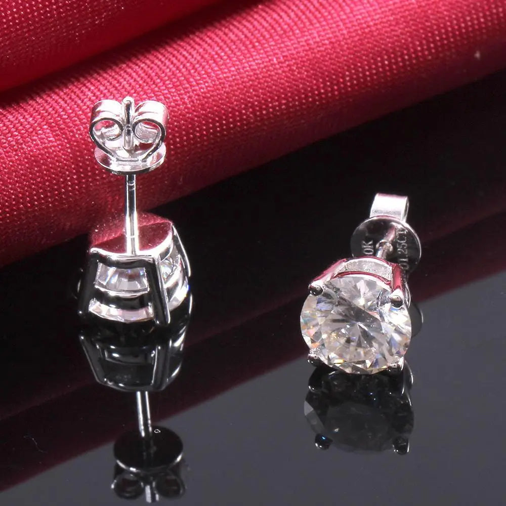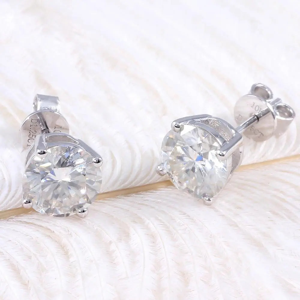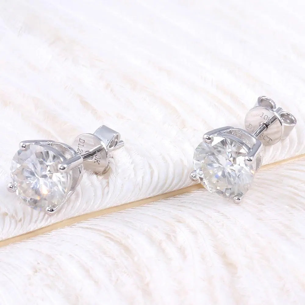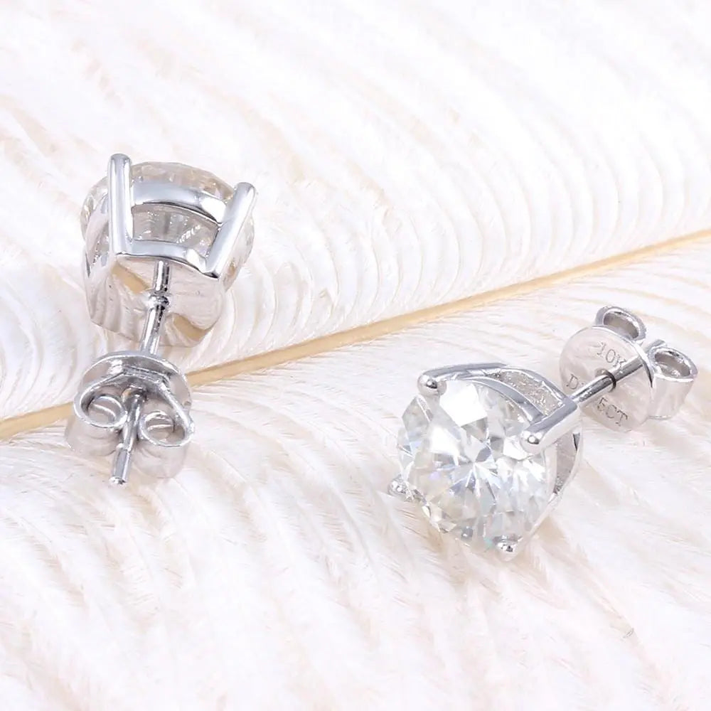 10k White Gold & Silver Stud Moissanite Earrings 1ctw - 3ctw Options