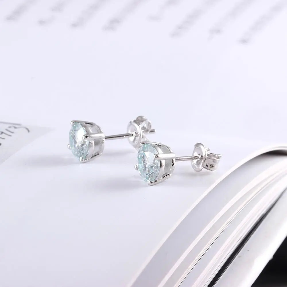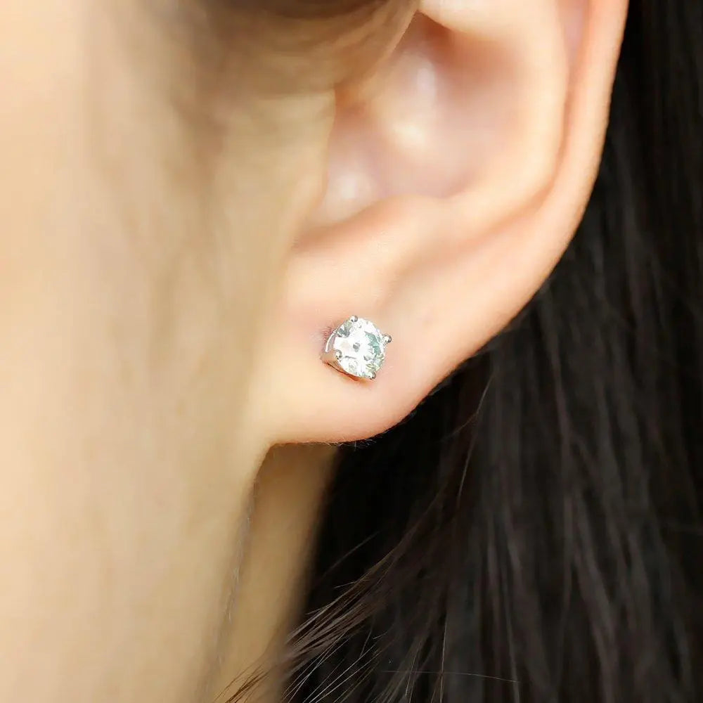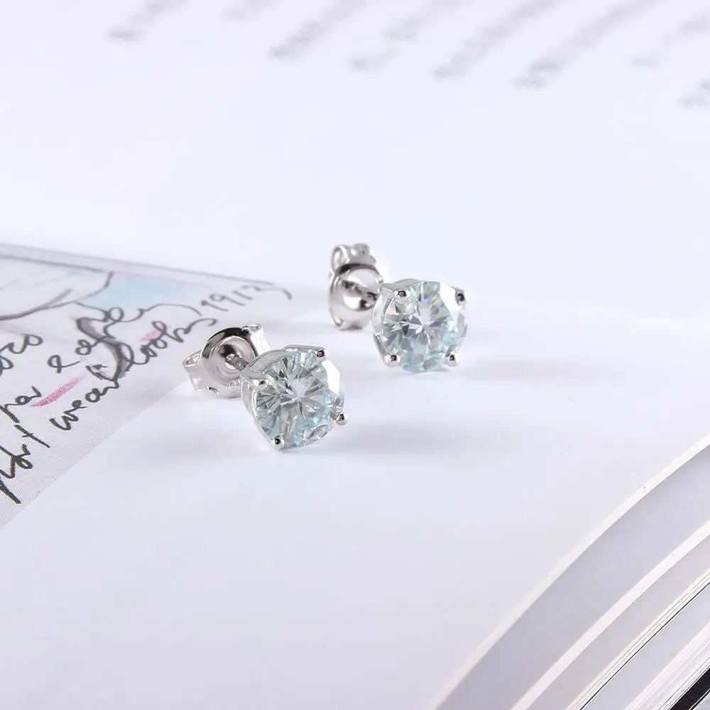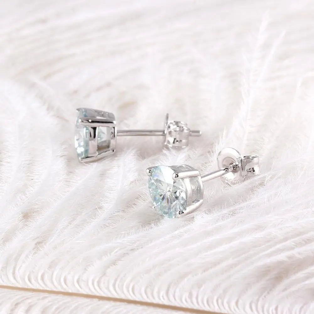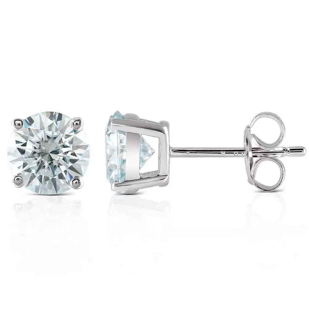 10k White Gold & Silver Stud Slight Blue Moissanite Earrings 2ctw