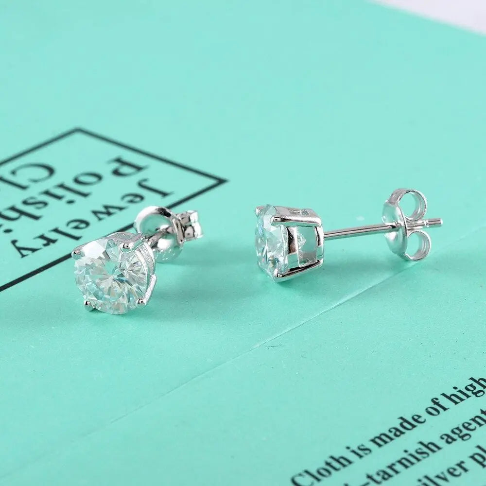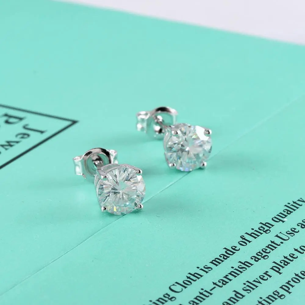 Stone Size: Each stone is 1 carat (6.5mm). The total carat weight of the moissanite earrings is 2 carat.