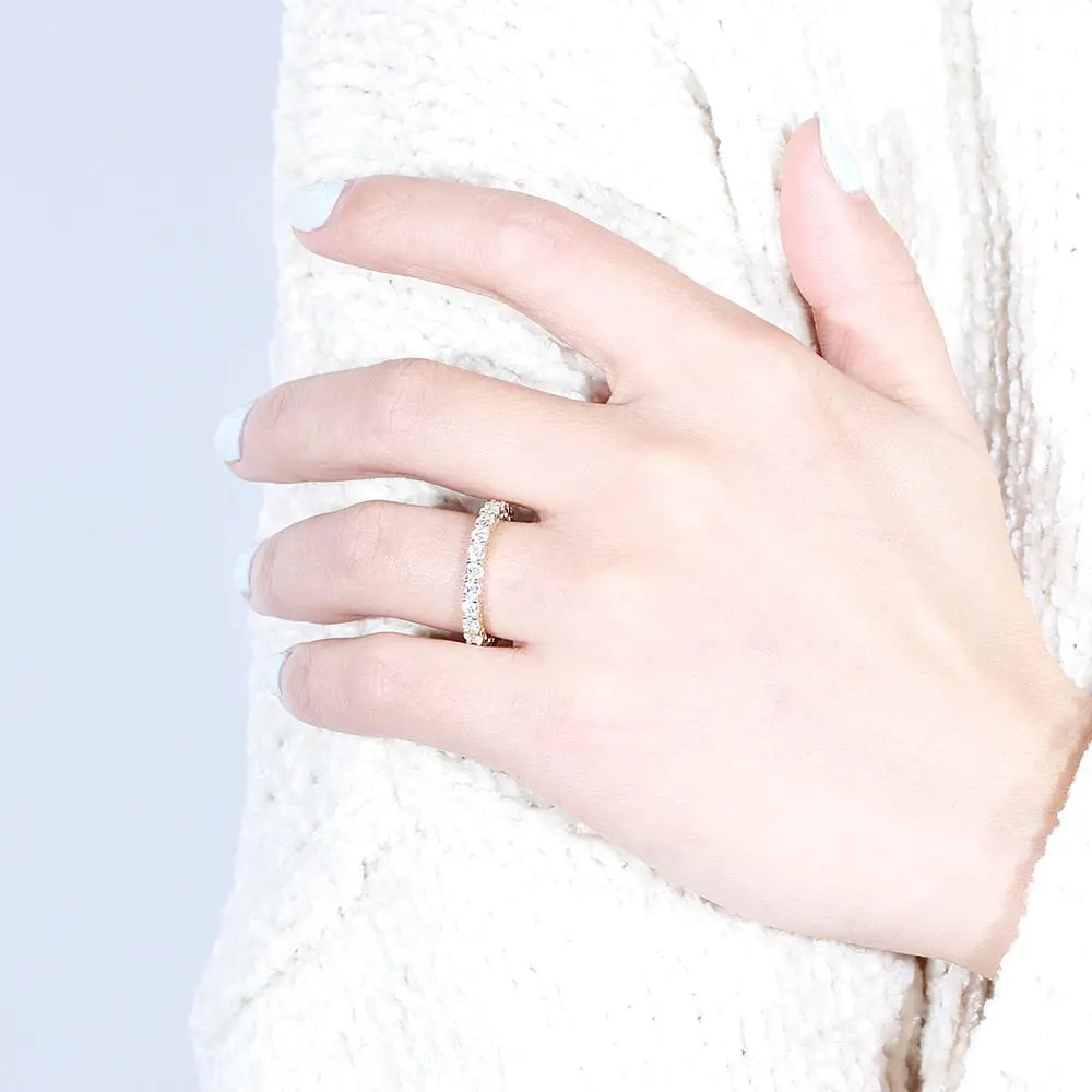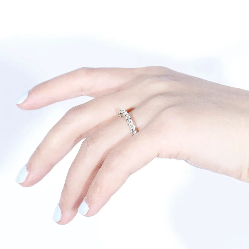 In addition to its beauty. this wedding band offers excellent value for those looking for both luxury and affordability. Moissanite. renowned for its incredible fire and brilliance. is an ethical and sustainable alternative to traditional diamonds. making it a favored choice among modern brides. The quality of the DE colorless FL-VVS1 stones provides unparalleled shine. making it a truly stunning wedding band for women that suits a variety of styles. whether classic or contemporary.
