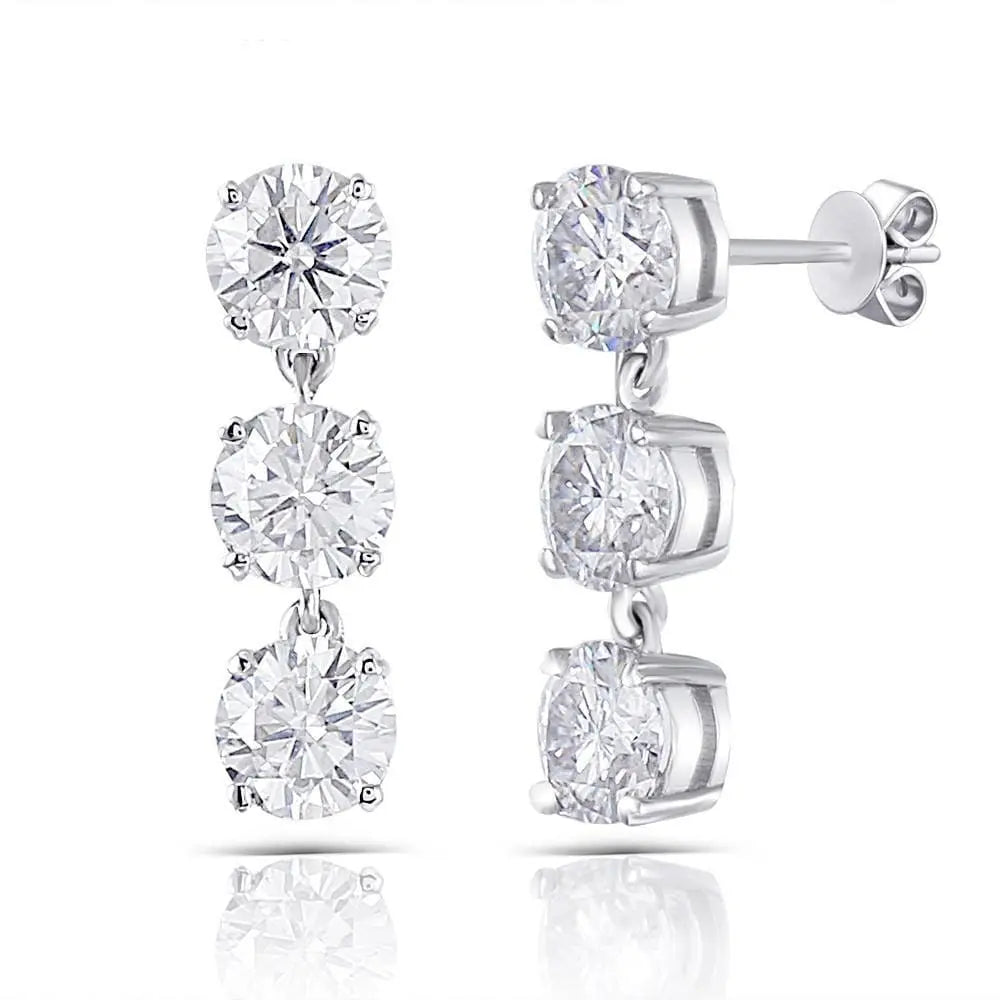14k / 10k White Gold Drop / Dangle Moissanite Elegant Long Earrings 3ctw