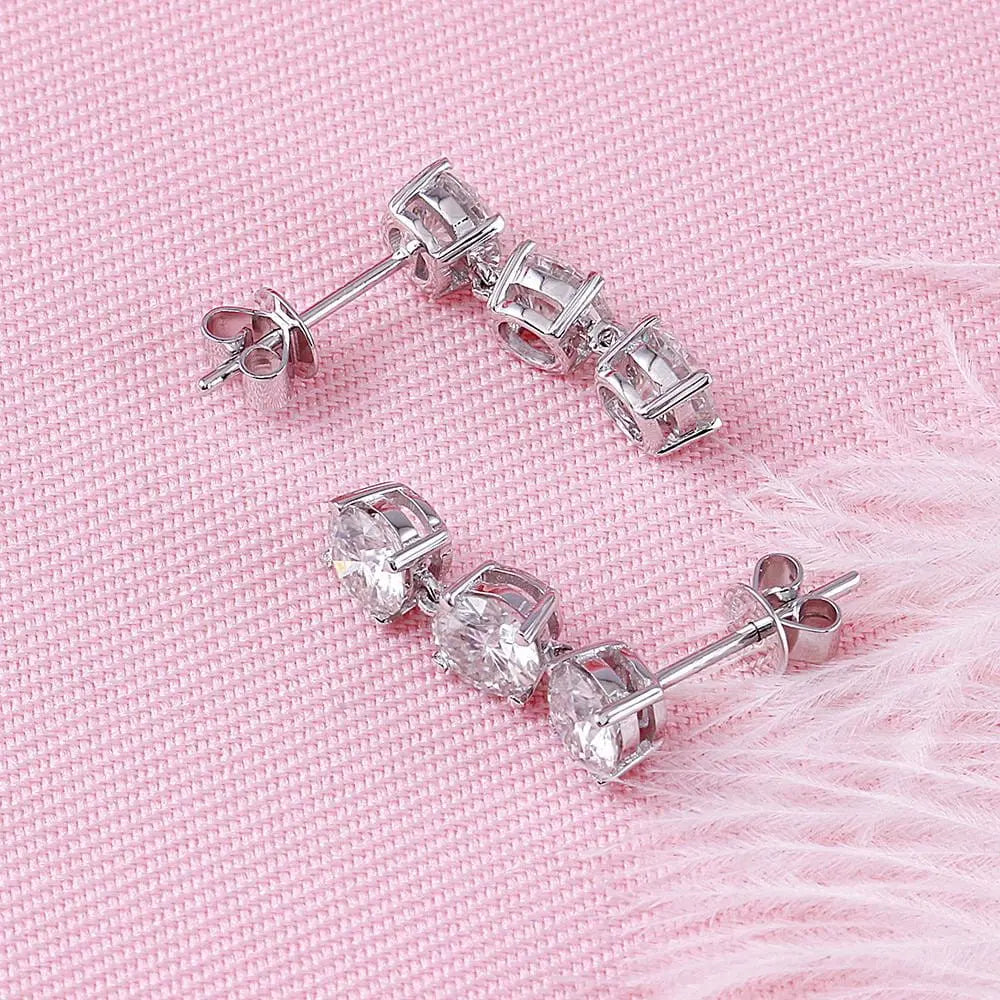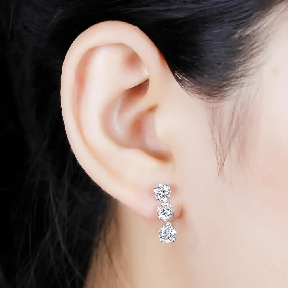- Stone Size: Each earring has three 0.5ct stones. totaling 1.5ct per earring and 3ct for the pair.