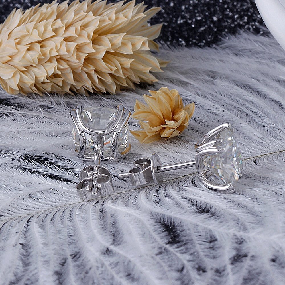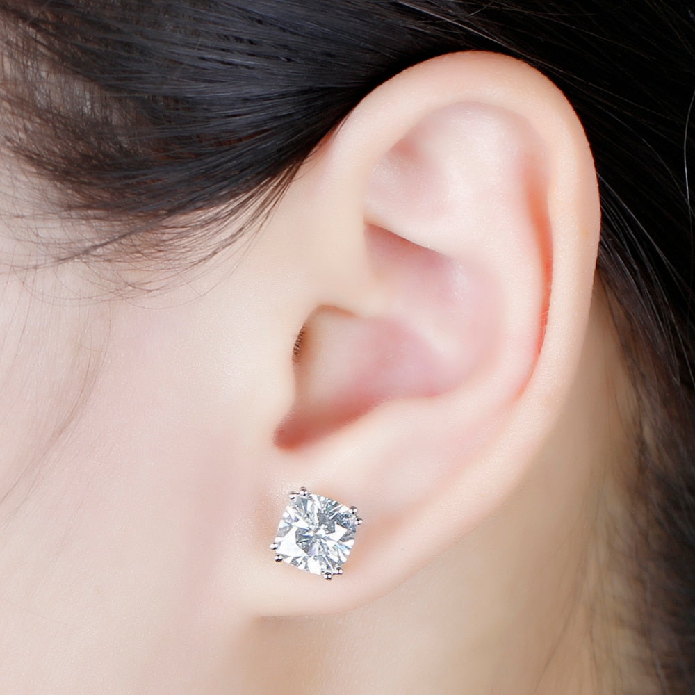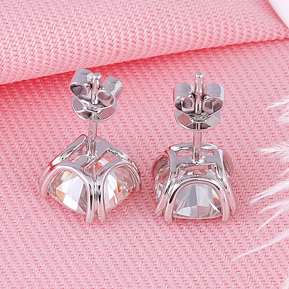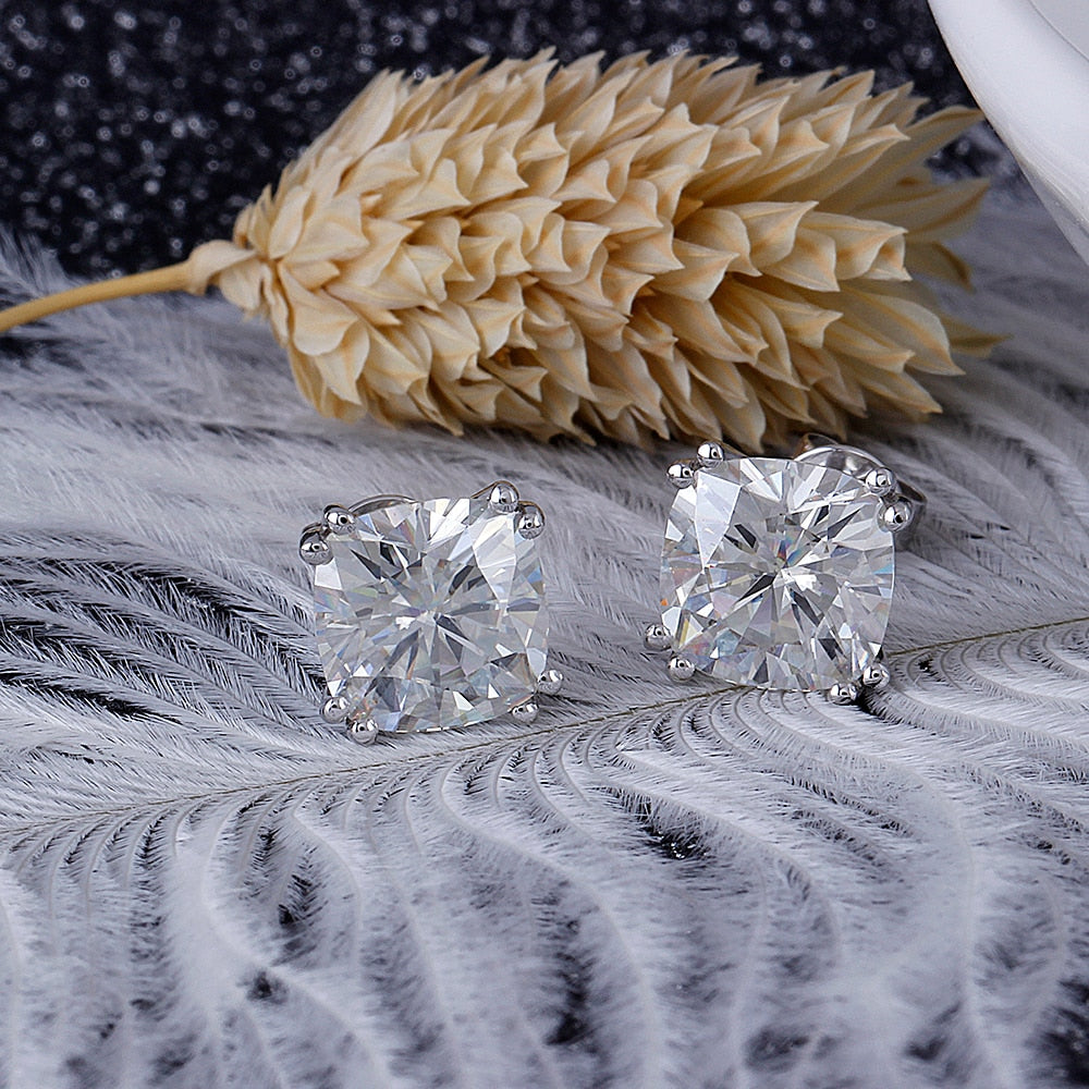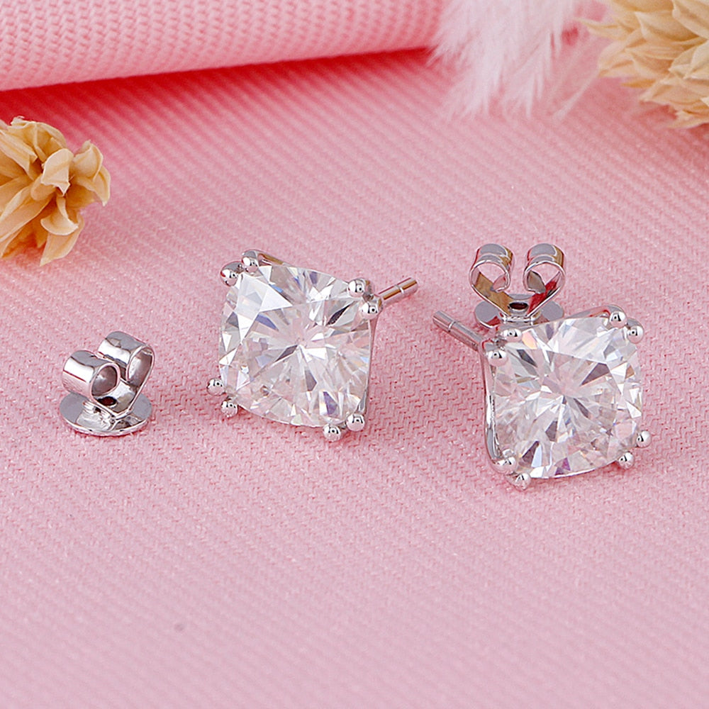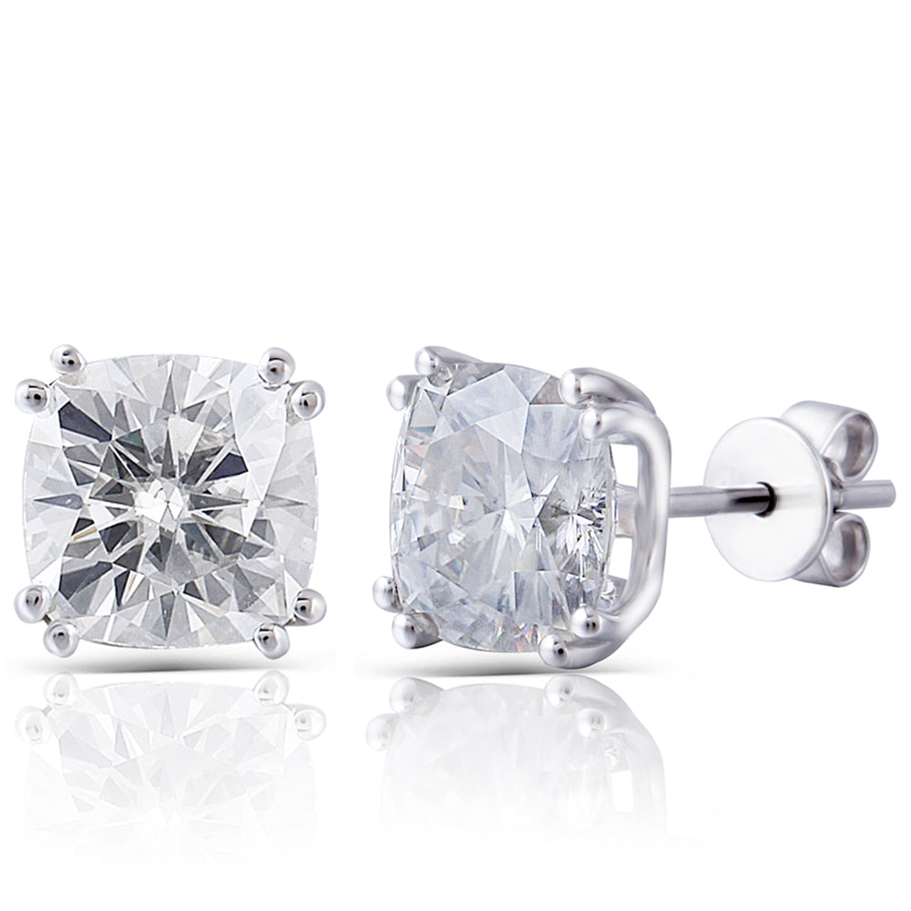 14k White Gold Cushion Cut Moissanite Stud Earrings 2.5ctw - 5ctw