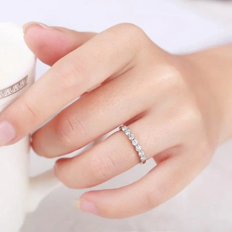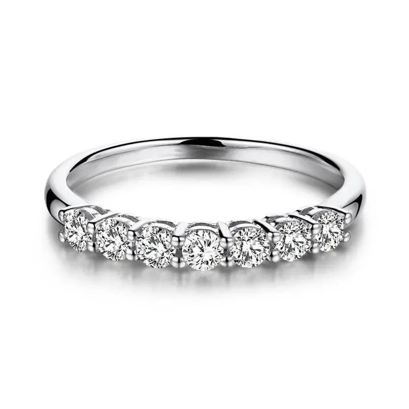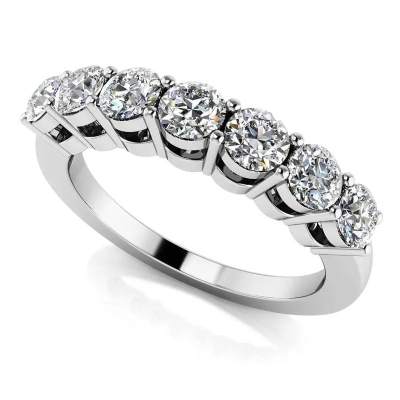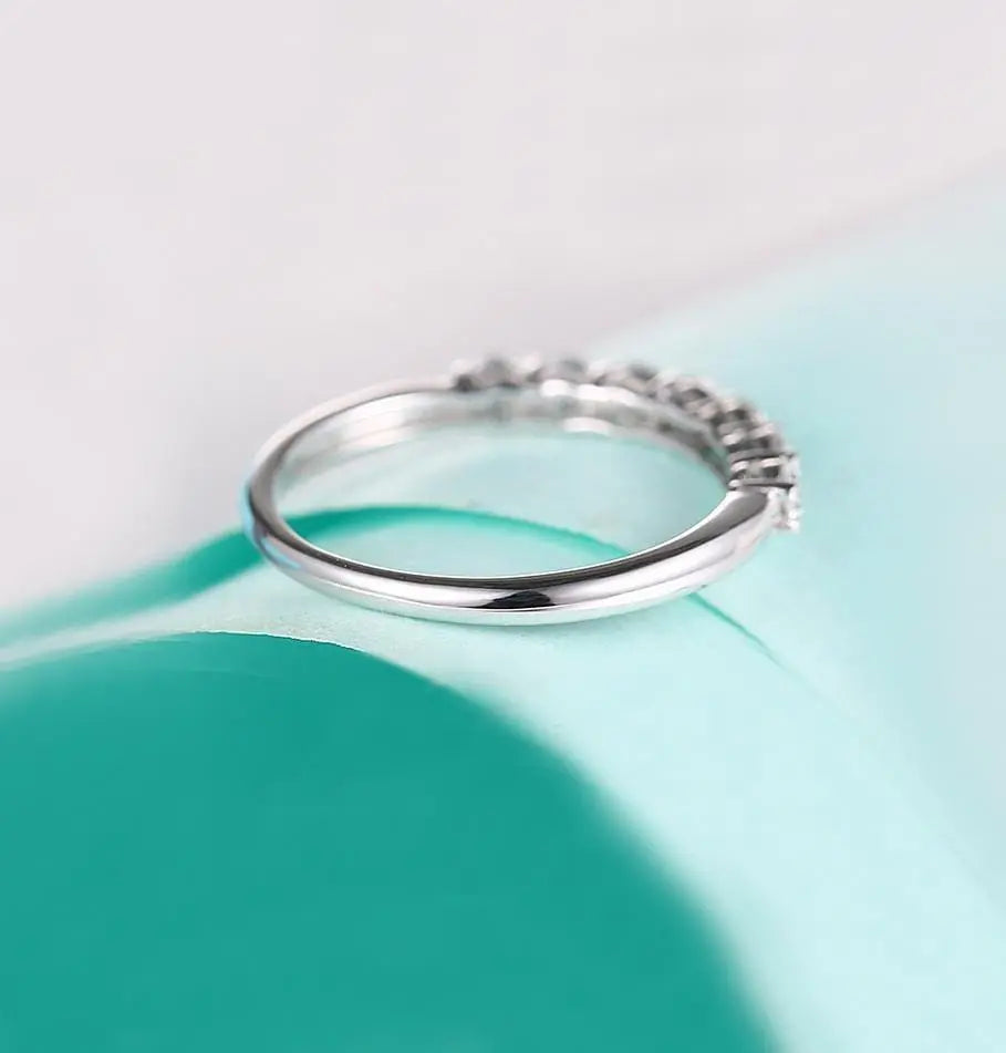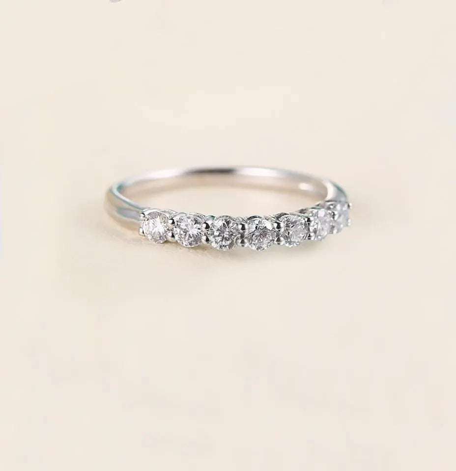 14k White Gold 7 Stone Moissanite Band | Unique Anniversary Rings for Her 0.7ct Total