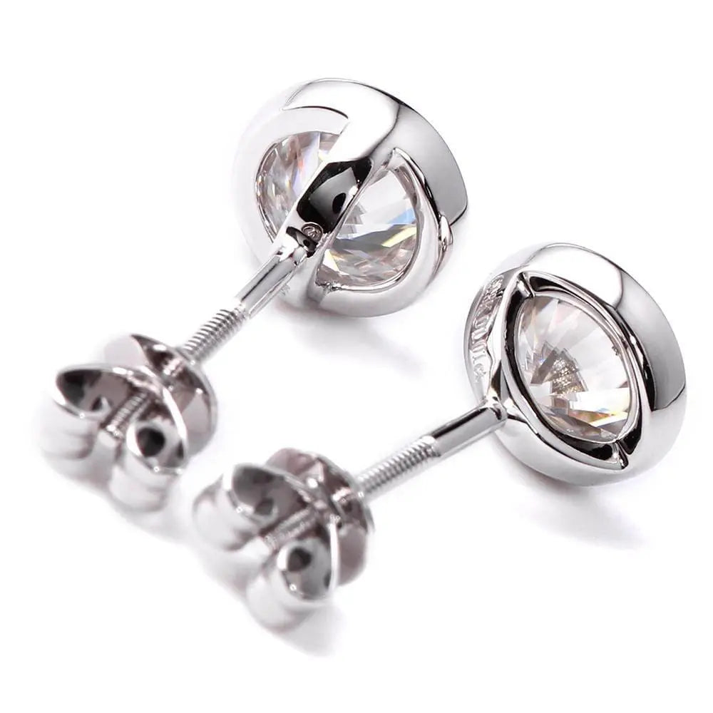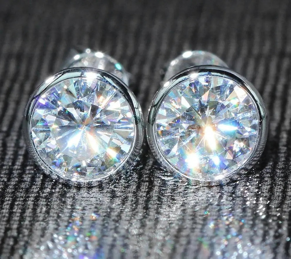 Discover the timeless beauty and sophistication of these bezel set earrings featuring stunning moissanite stones. set in luxurious 14k white gold. Designed for those who appreciate refined elegance and enduring quality. these moissanite stud earrings are the perfect accessory for both everyday wear and special occasions.