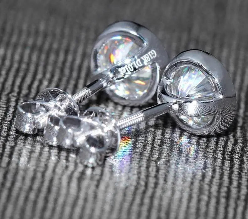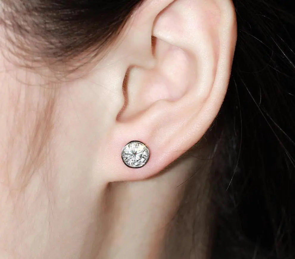 The moissanite stones are set in a sleek. modern bezel setting. which not only enhances their appearance but also offers added protection. This setting encircles the stone in a smooth metal band. ensuring durability while giving the earrings a contemporary. minimalist look. The bezel setting is perfect for those who want both beauty and practicality in their jewelry.