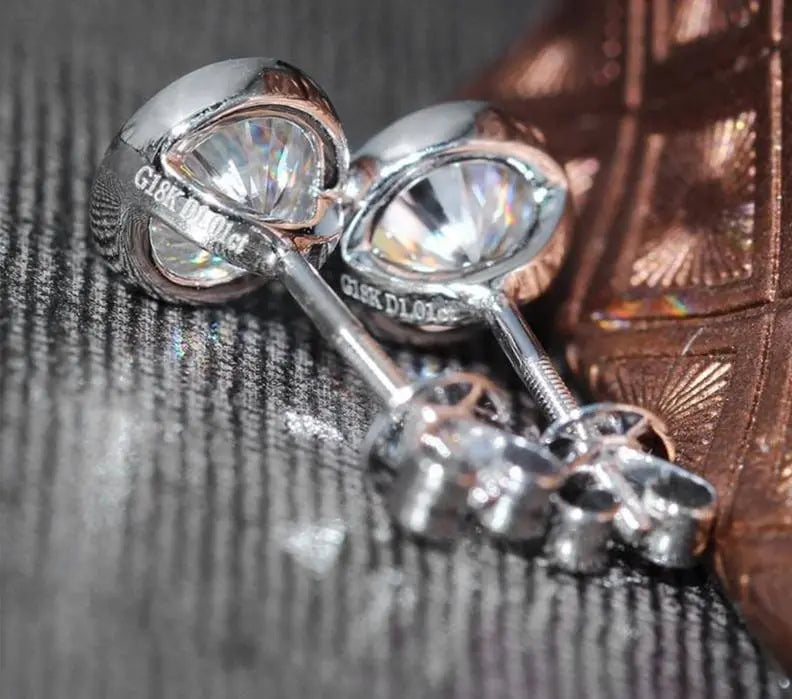 - Stone Size: Each stone is 1 carat (6.5mm). with a total carat weight of 2ct for the pair.