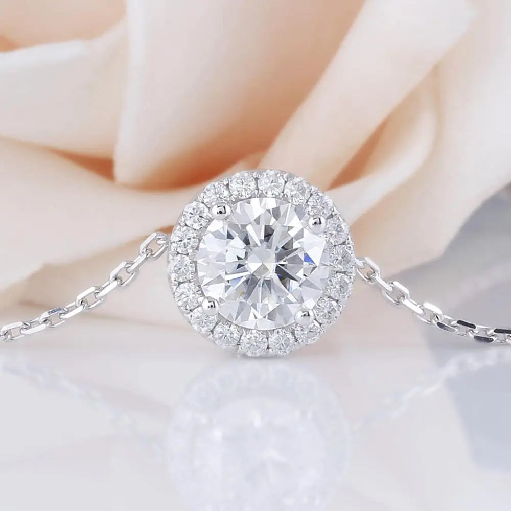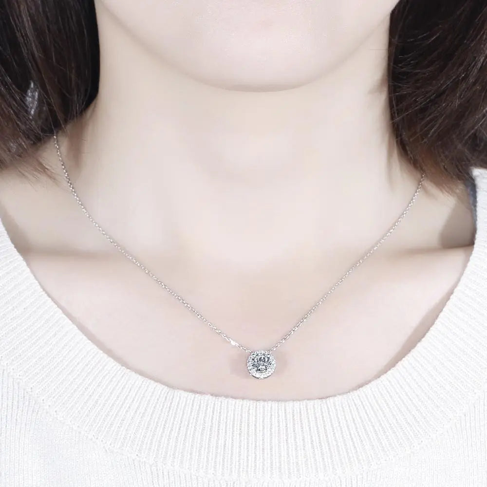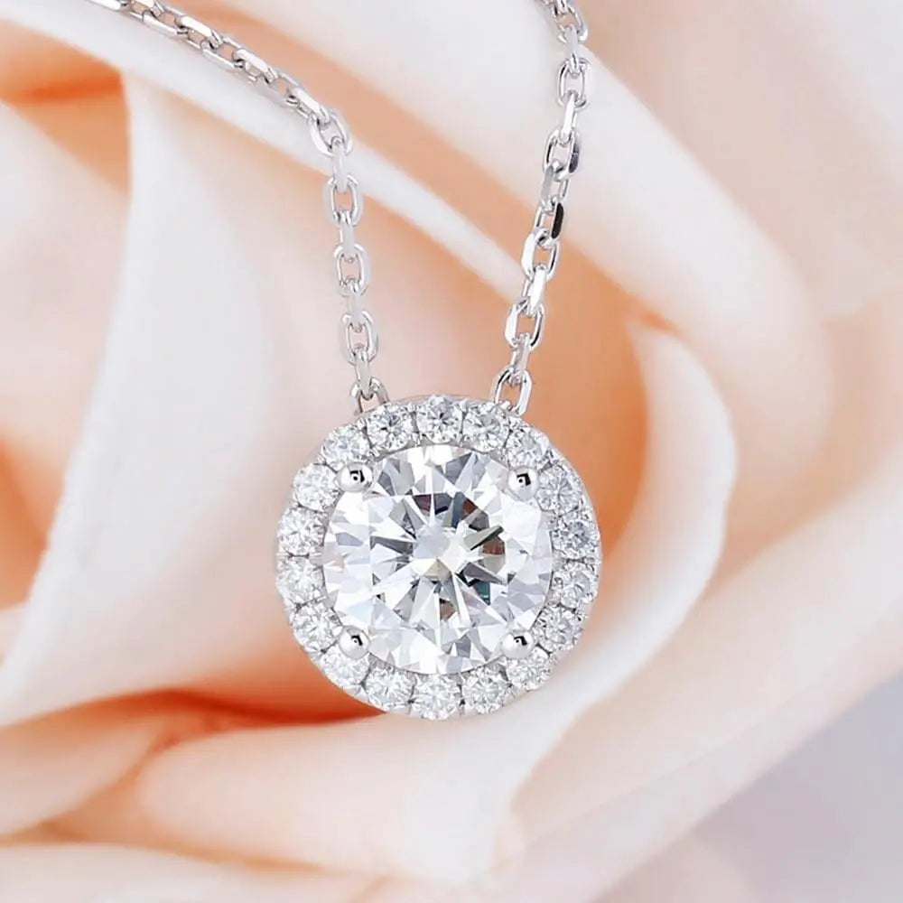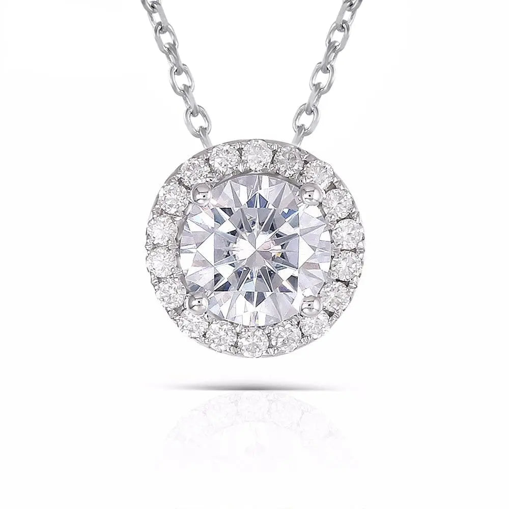 14k White Gold Halo Moissanite Stunning Necklace 1ct Center Stone