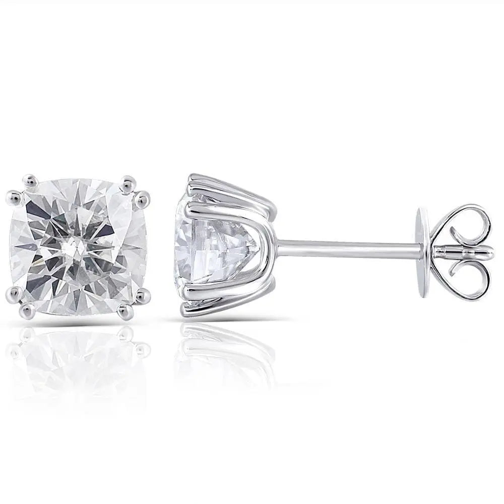 14k White Gold Moissanite Stud Cushion Cut Earrings 2.2ctw
