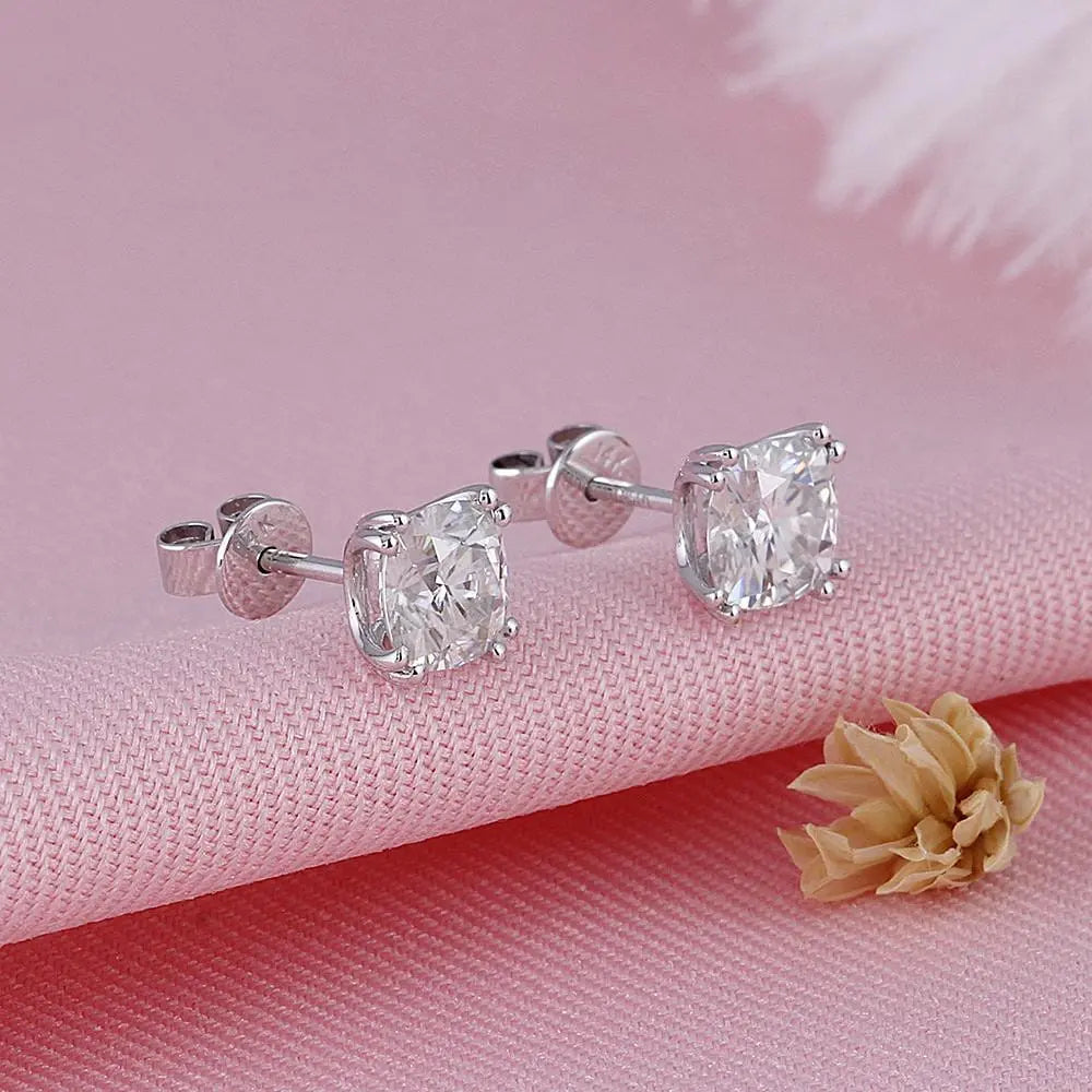 These Cushion Cut Earrings are set with high-quality DE color moissanite stones. known for their stunning clarity and incredible brilliance. With FL-VVS1 clarity. the stones offer a near-perfect appearance. free of visible inclusions. The cushion cut design enhances the stone's natural sparkle. creating a dazzling display of light with every movement. Each stone weighs 1.1 carats. offering a total carat weight of 2.2 carats for the pair. making them the ideal balance of elegance and sophistication.