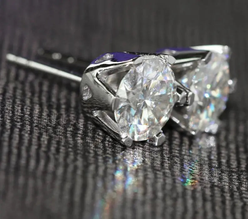Main Stone: 1 carat 6.5mm each. 2 carat total.