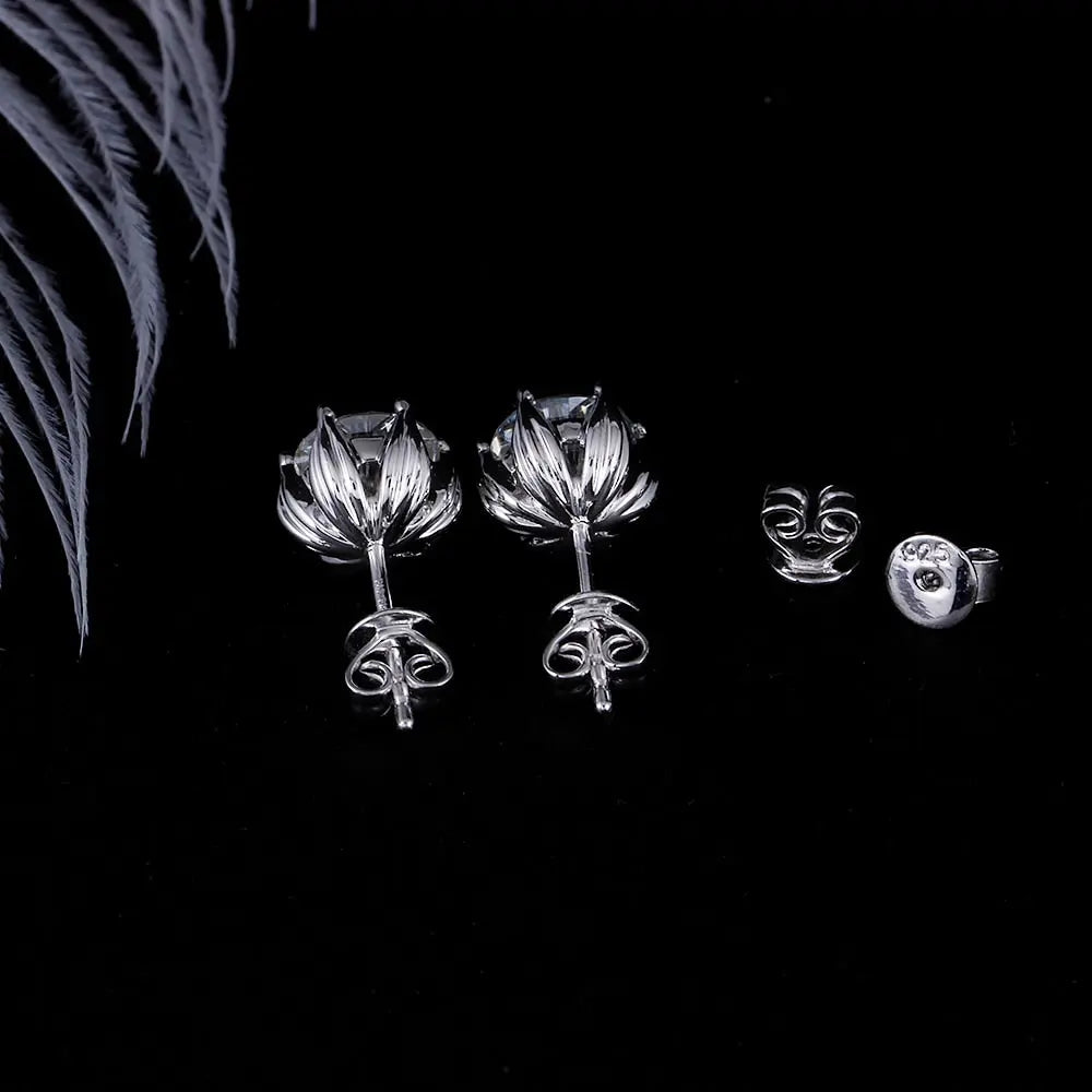 Step into sophistication with our stylish earrings that seamlessly combine timeless elegance and modern craftsmanship. These 14k white gold and platinum-plated silver flower stud moissanite earrings are the perfect addition to your jewelry collection. whether you're dressing up for a formal occasion or adding a touch of glamour to your everyday attire.