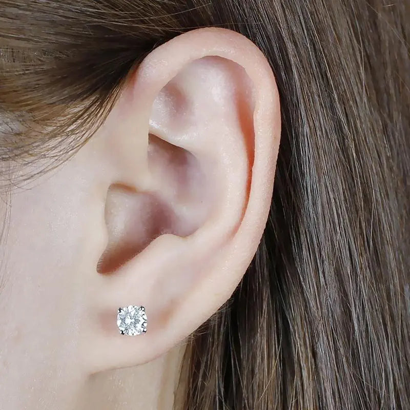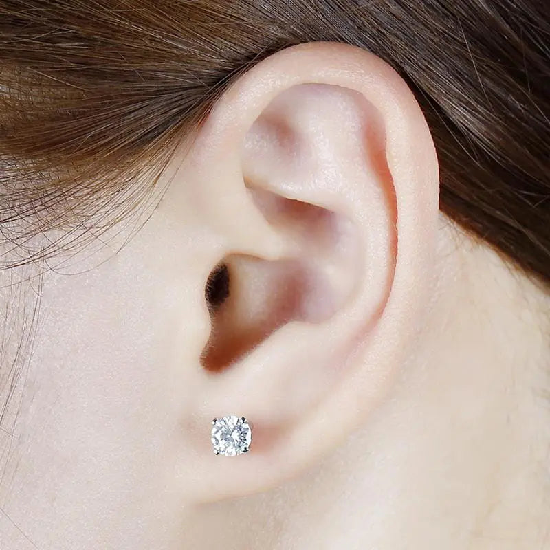 Stone Size: Each stone is 0.5 carat 5mm. Total carat weight for the pair is 1ct.