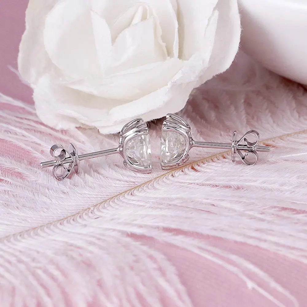 14k White Gold Moissanite Stud Earrings Cute 2ctw
