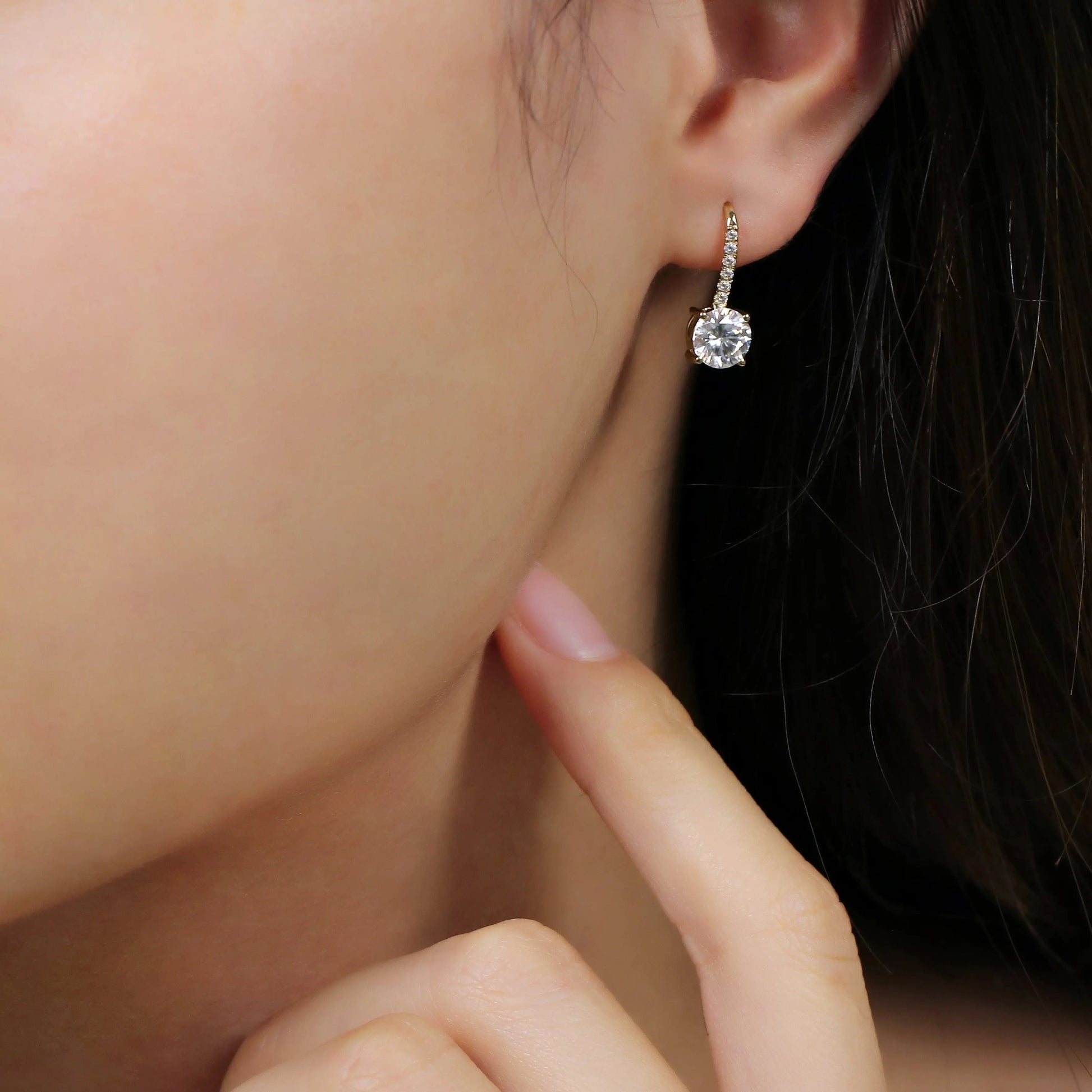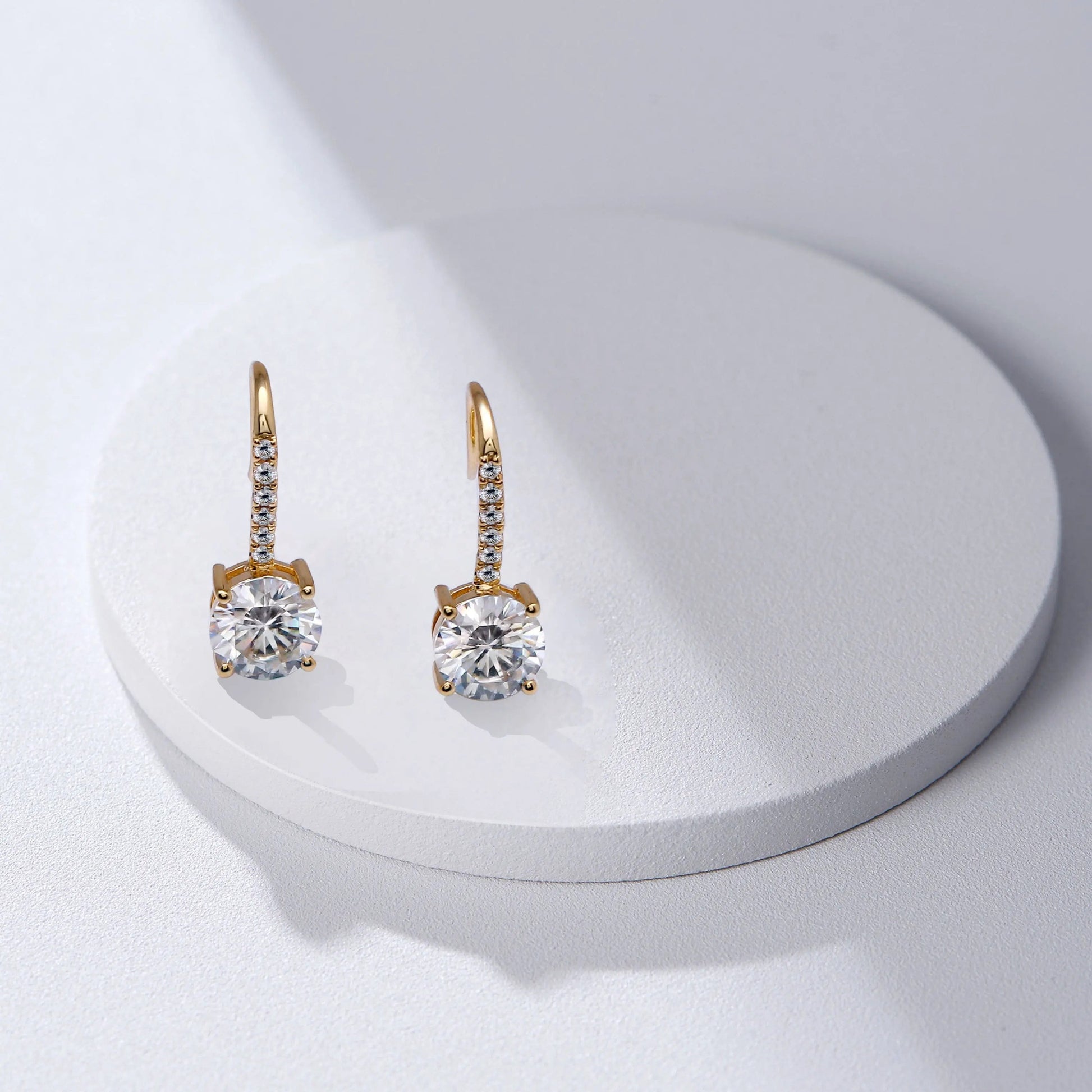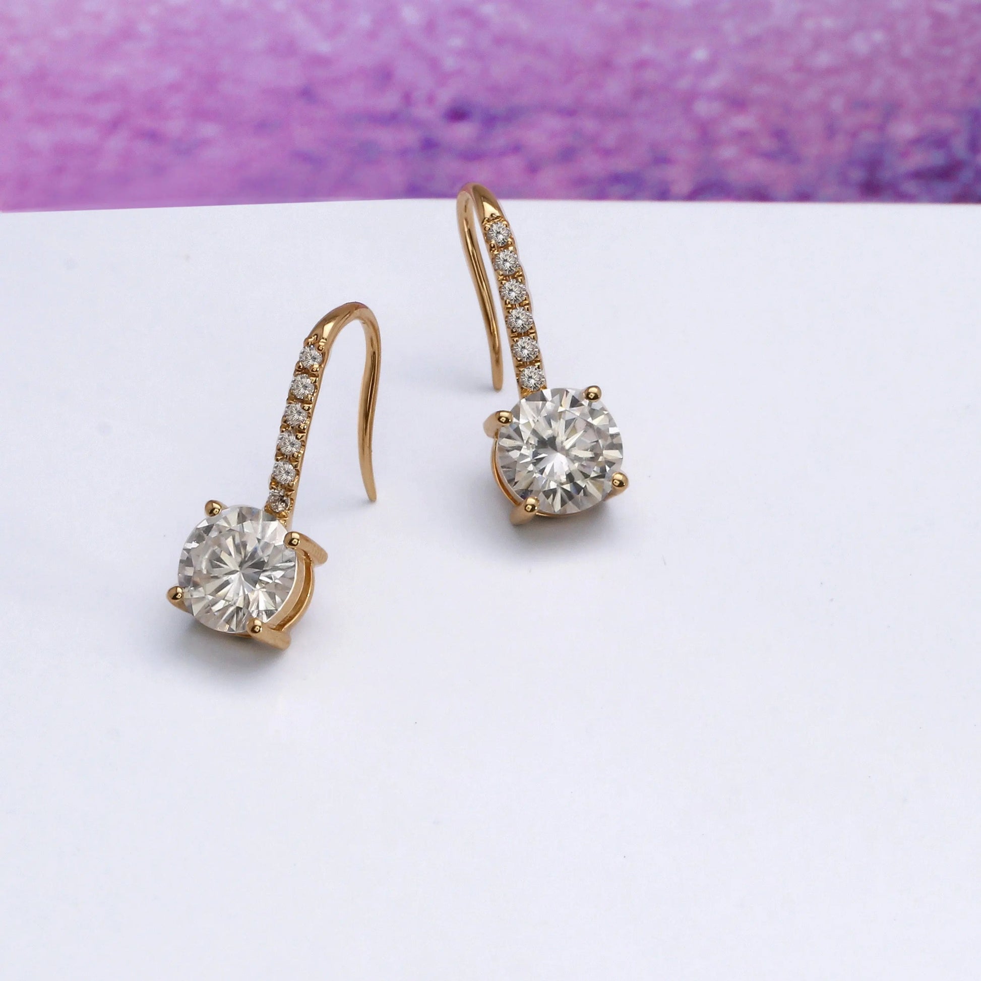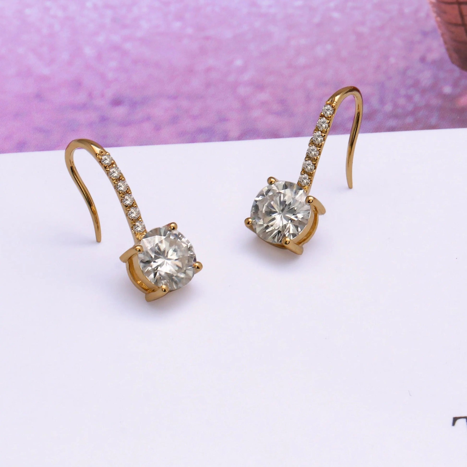 - Brilliant Moissanite Stones: Each earring features a dazzling 1-carat round-cut moissanite stone. celebrated for its sparkle and fire. The additional small moissanite accents. totaling 0.12 carat for the pair. add a touch of glamour to these already spectacular earrings. With FG color and VVS1 clarity. these stones provide unmatched brilliance and shine.
