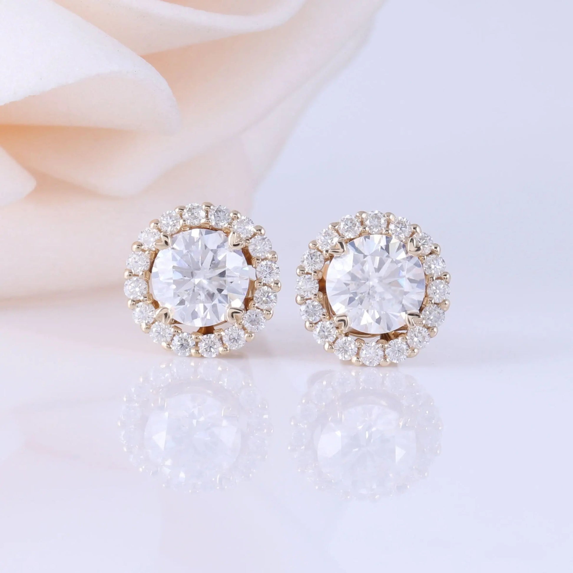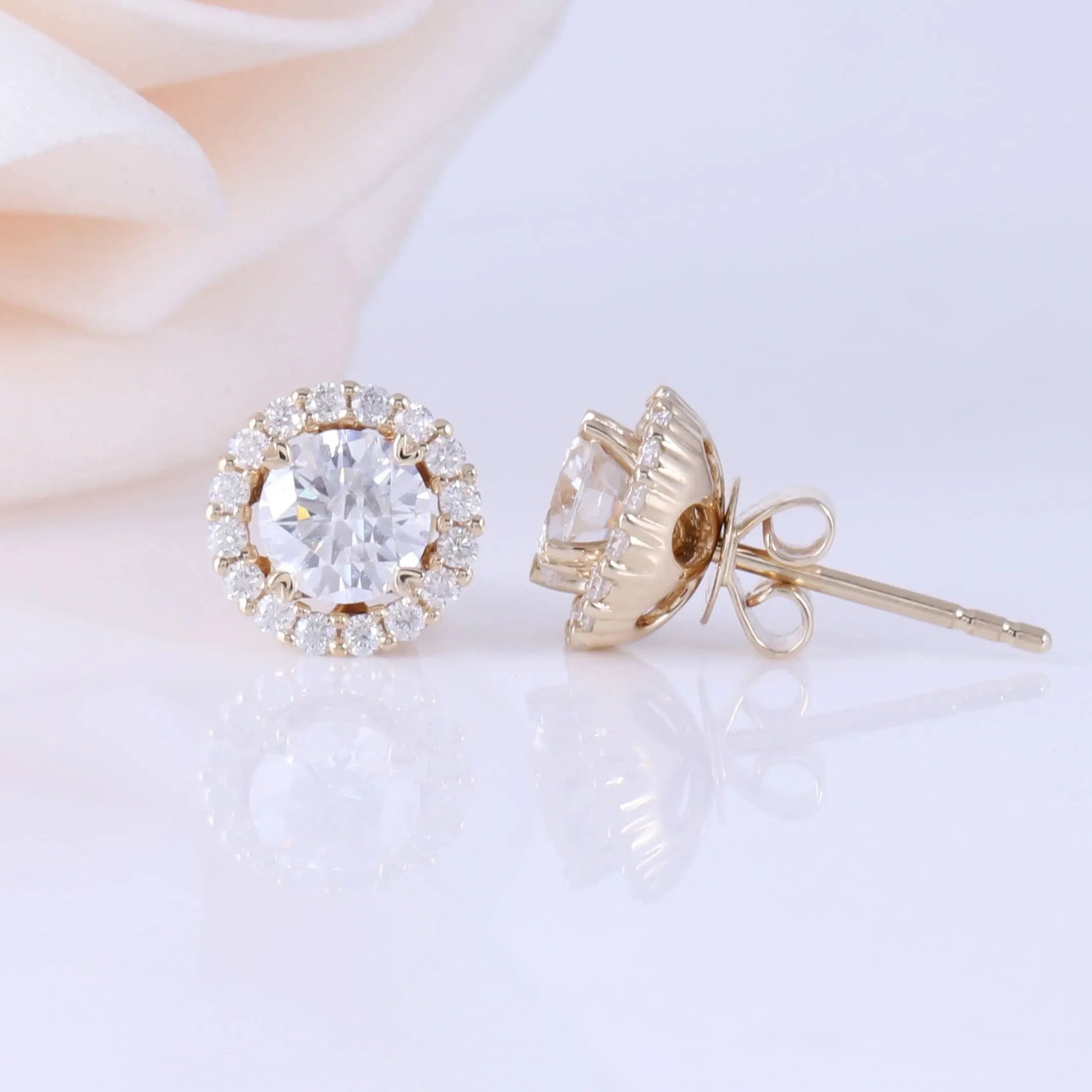 14k Yellow Gold Halo Moissanite Stud Earrings / Nice Earrings for Girlfriend 1.28ctw