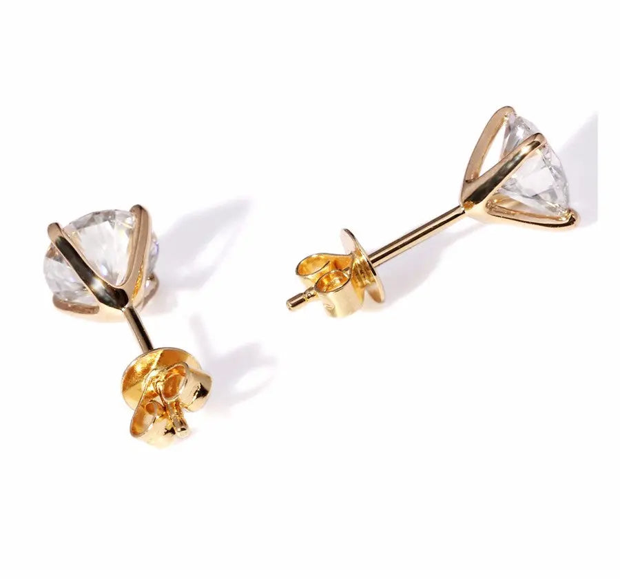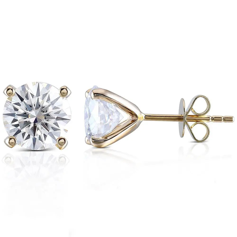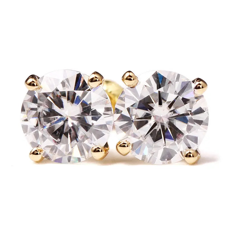14k Yellow Gold Moissanite Stud Earrings 1ctw - 2.4ctw Options / Best Earrings Material for Sensitive Ears