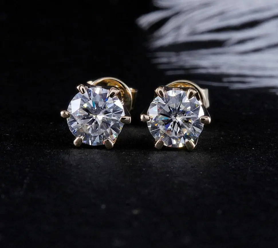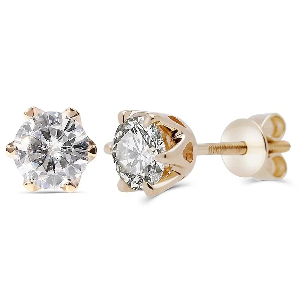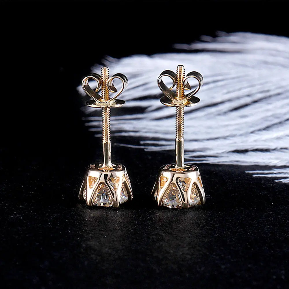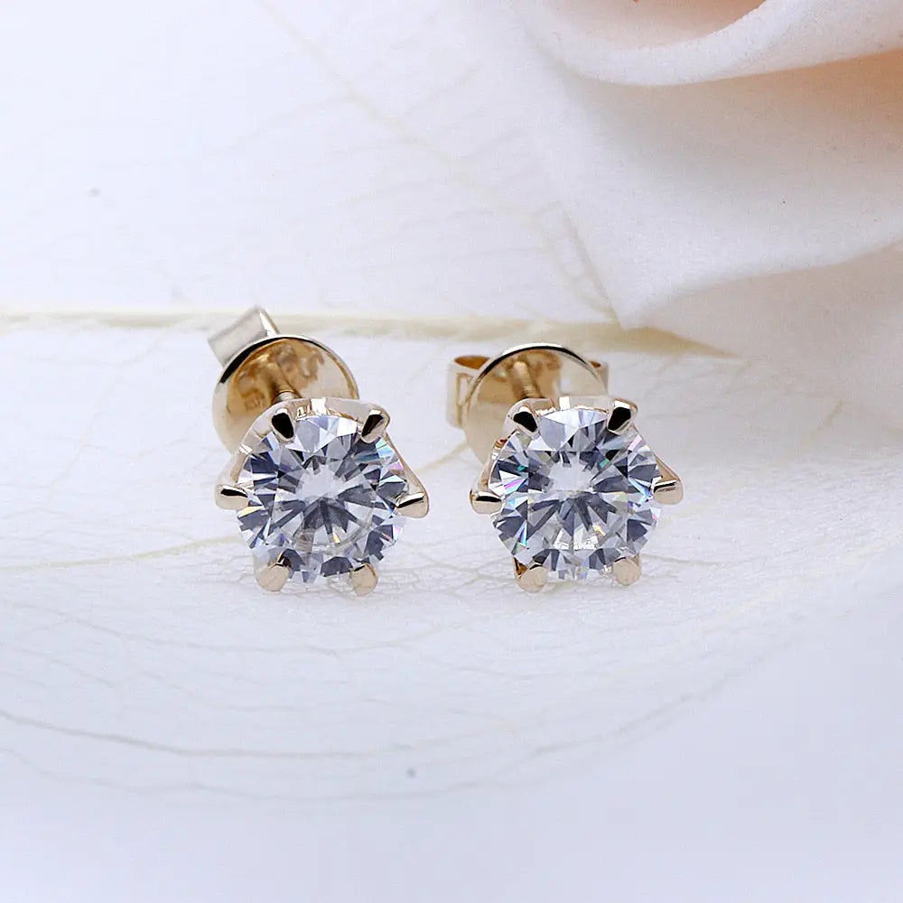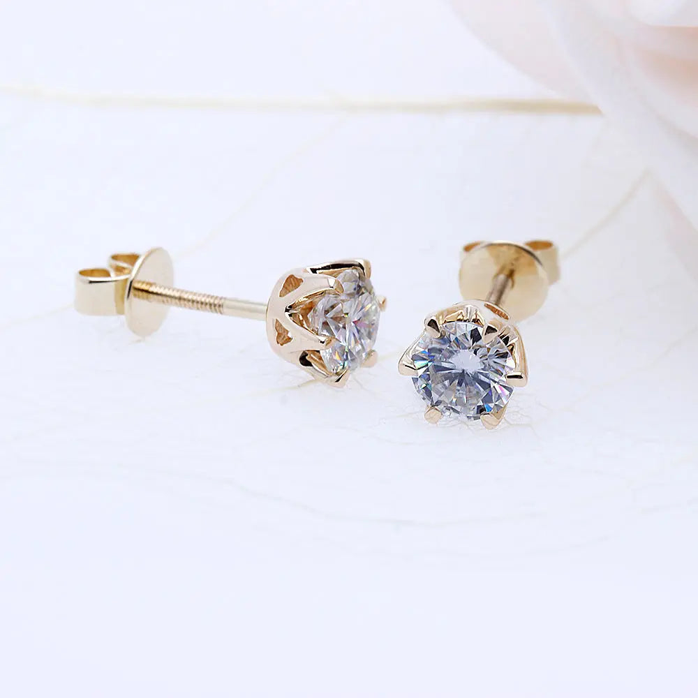 Stud Earrings Yellow Gold Collection - 14k Yellow Gold Stud Moissanite Earrings 1ctw