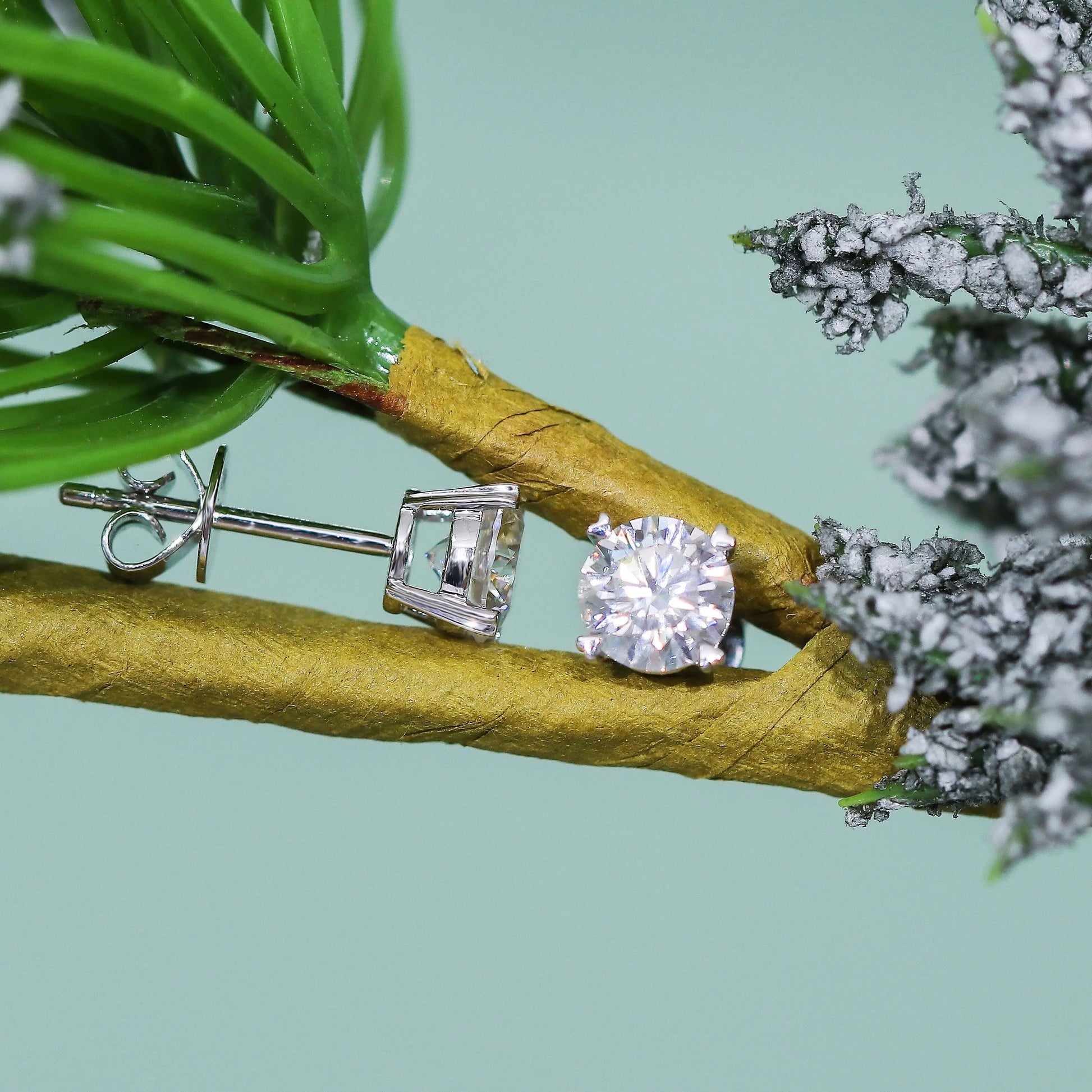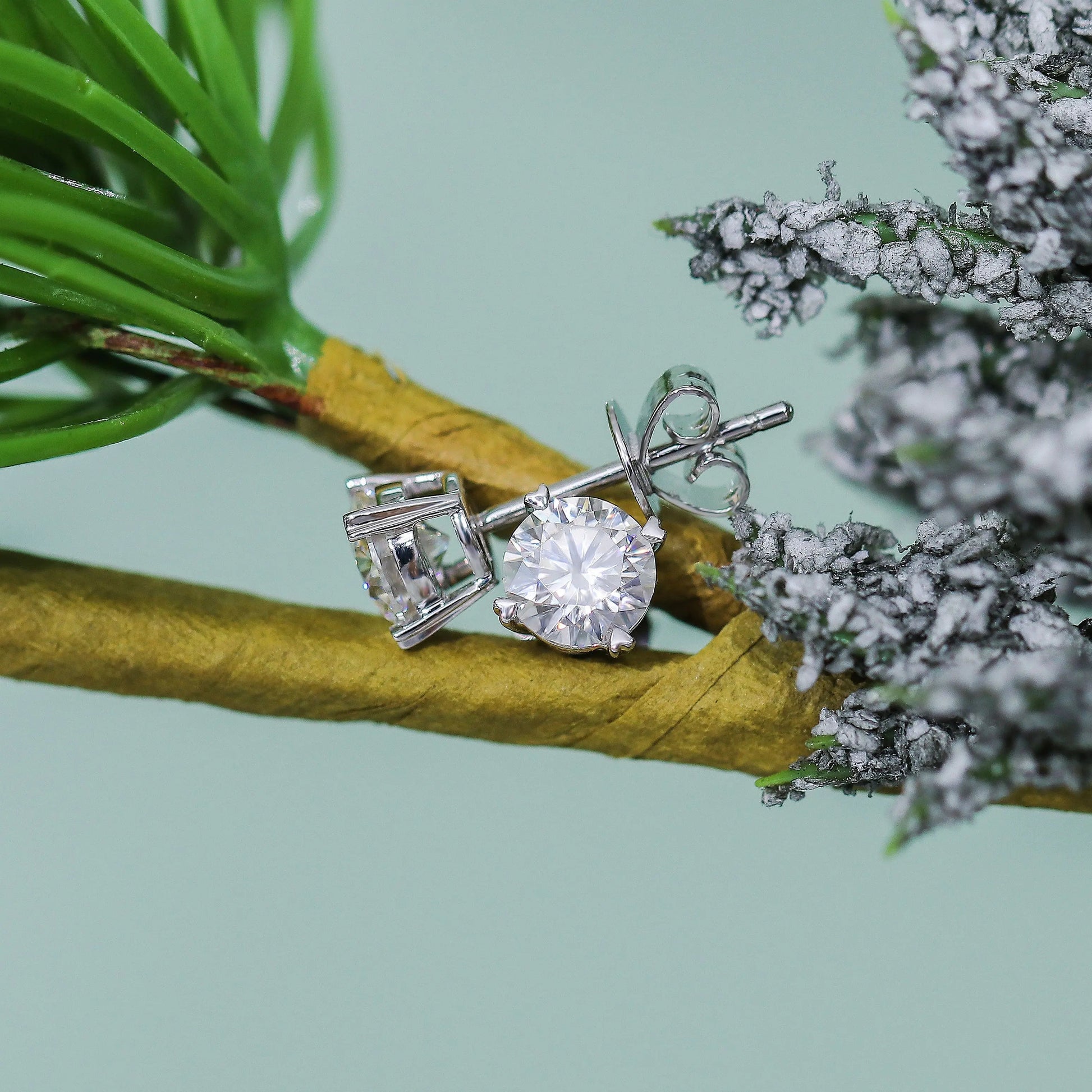 14k White Gold Stud Moissanite Earrings 2ctw / Premium Moissanite Rings