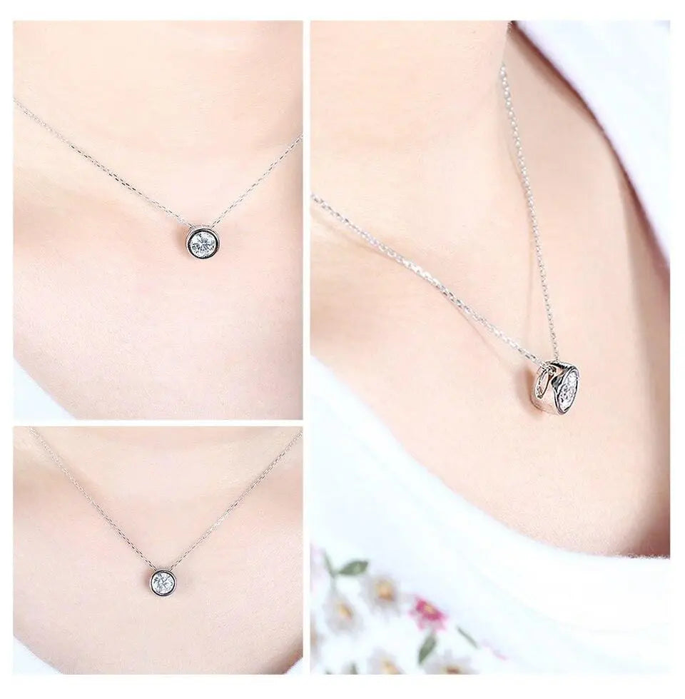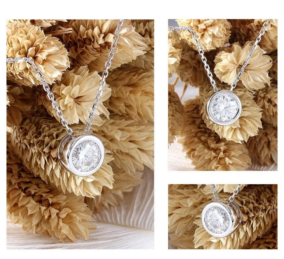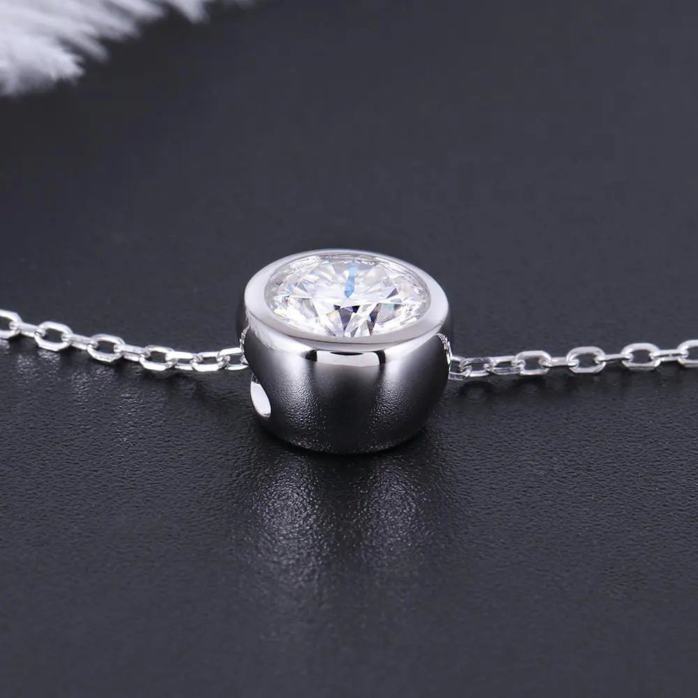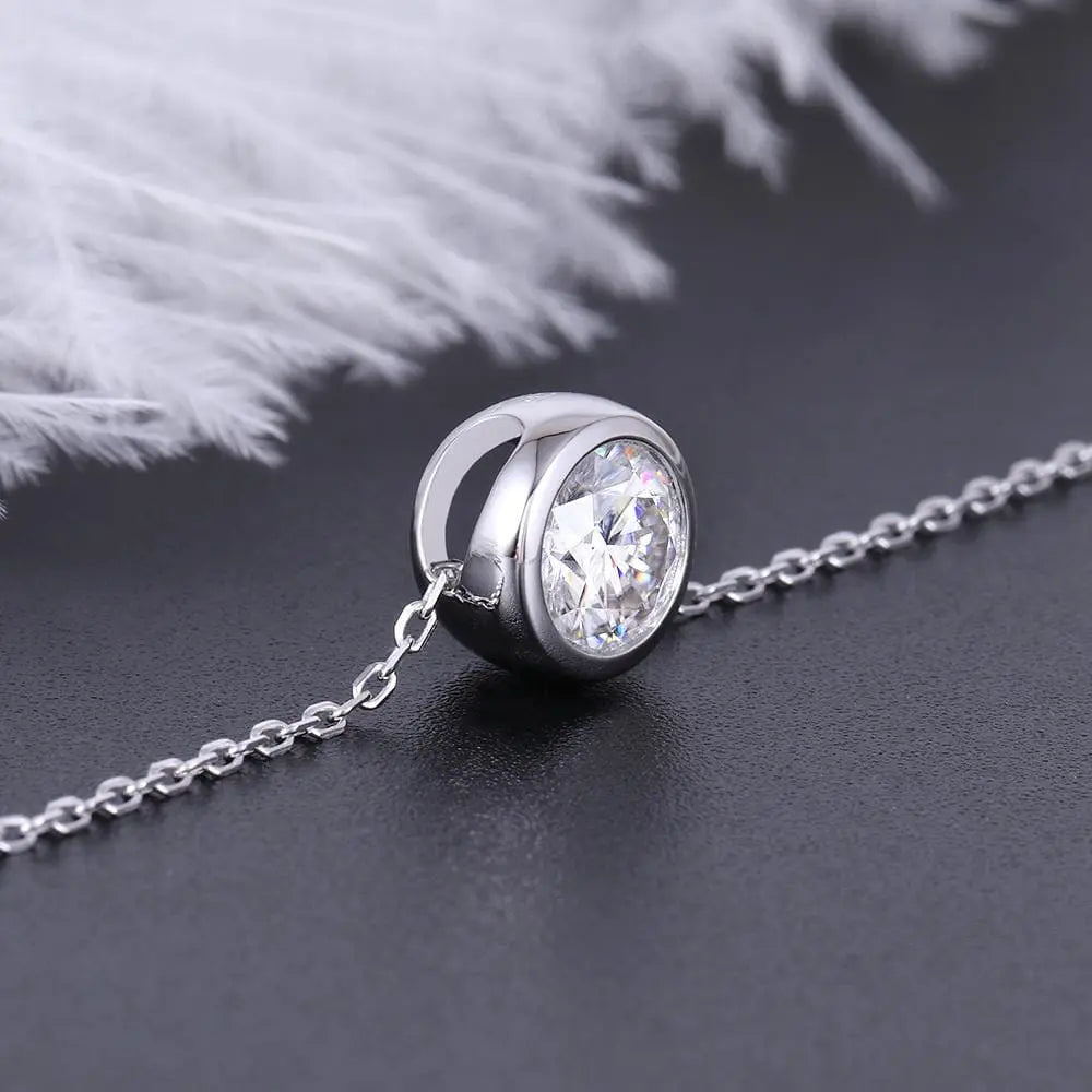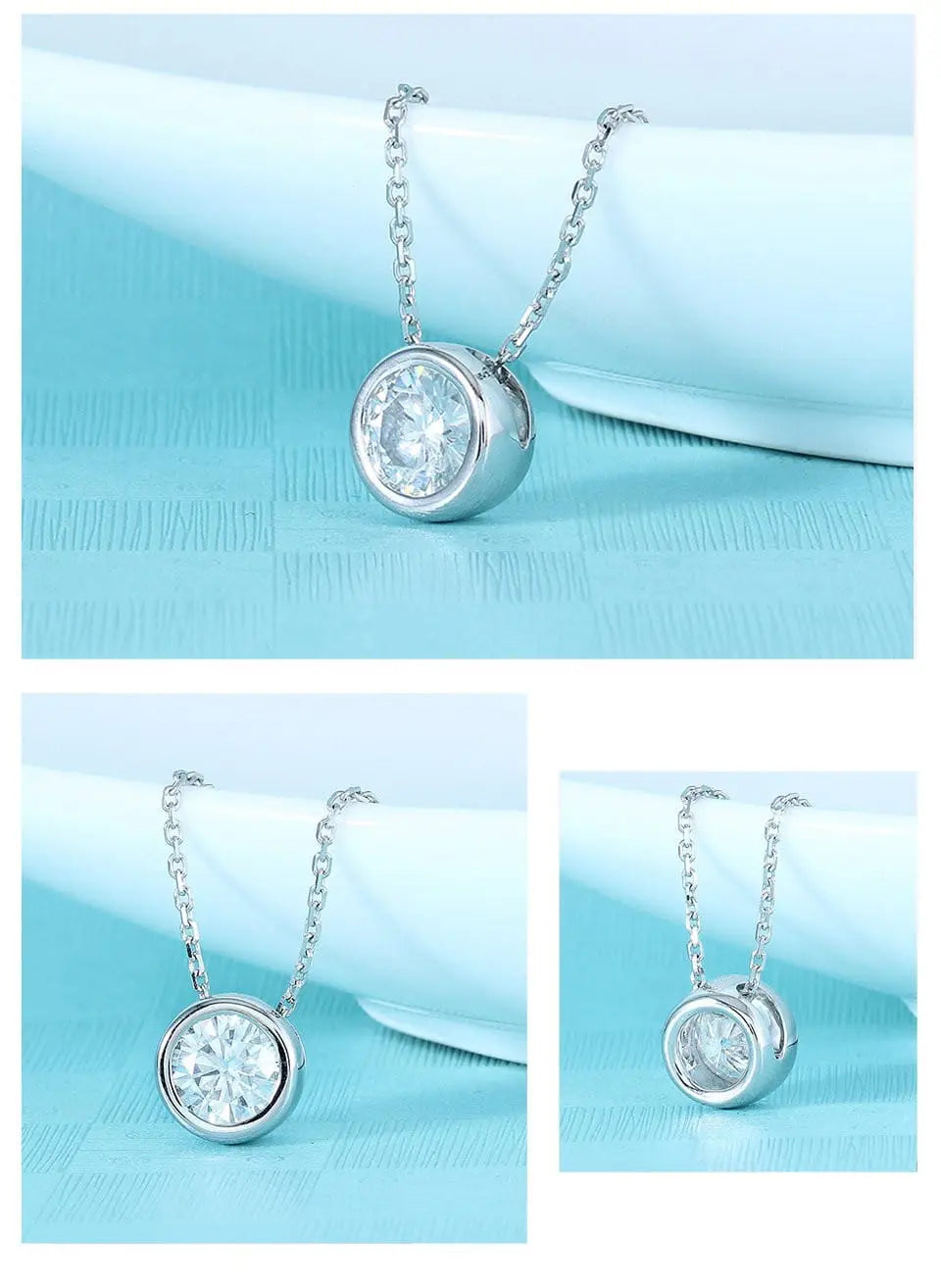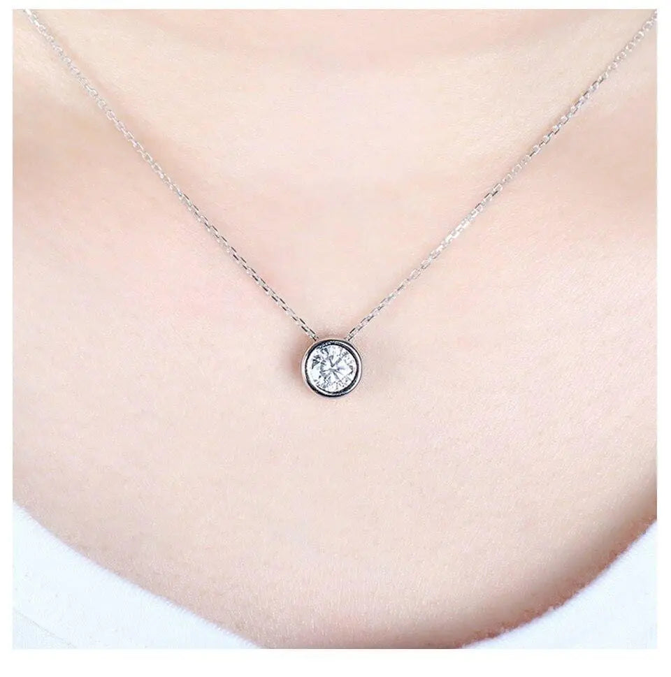 18k White Gold Bezel Set Moissanite Beautiful Long Necklace 1ct