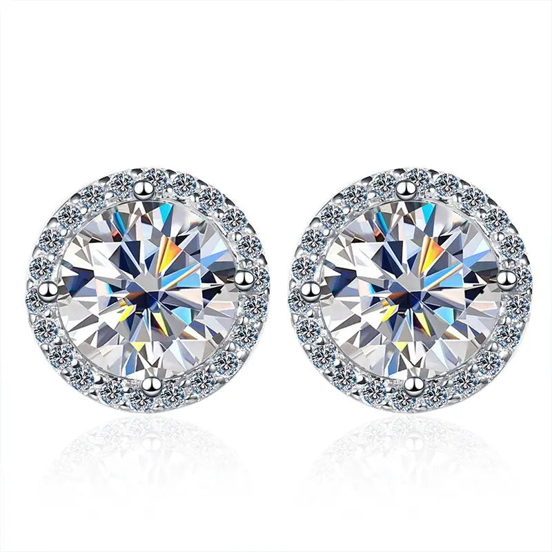 BEST SILVER HALO MOISSANITE STUD EARRINGS