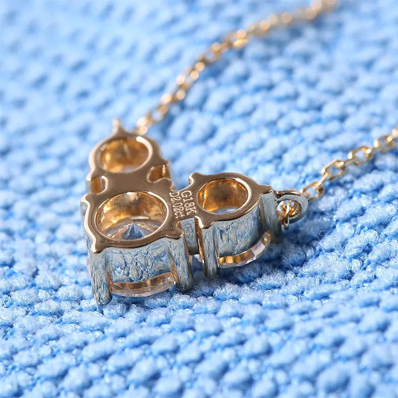 The necklace for women long is designed with high-quality Moissanite stones that boast DEF color. FL-VVS1 clarity. and exceptional brilliance. The main center stone is a 1-carat round-cut Moissanite (6.5mm). with two side stones of 0.5 carats (5mm) each. creating a harmonious and eye-catching design. The round-cut stones sparkle with every movement. catching the light and ensuring that you stand out wherever you go.