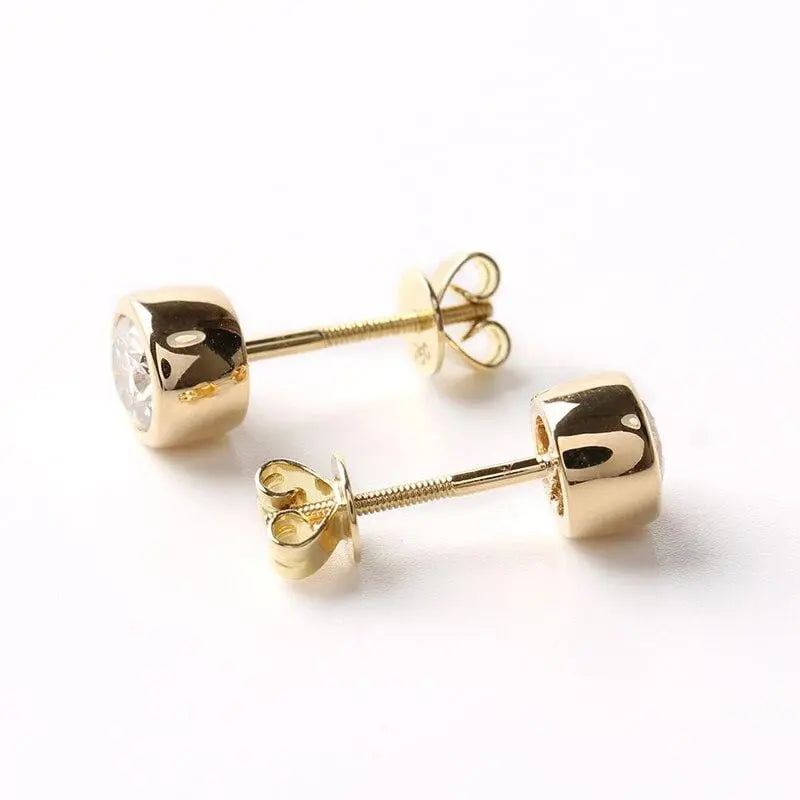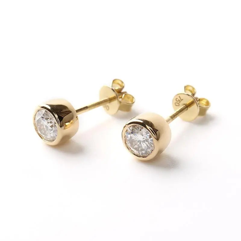 18k Yellow Gold Stud Moisssanite Cute Little Earrings 1ctw