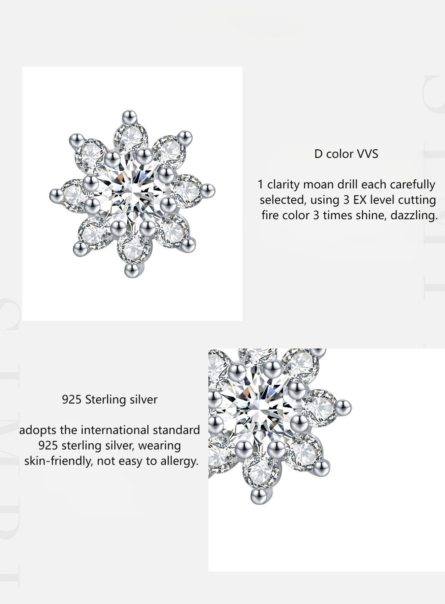 Elevate your elegance with our 40-point moissanite s925 silver flower earrings. The chic design is perfect for any occasion, while the sparkling diamond snowflake adds a touch of glamour. Made for women who appreciate timeless style.