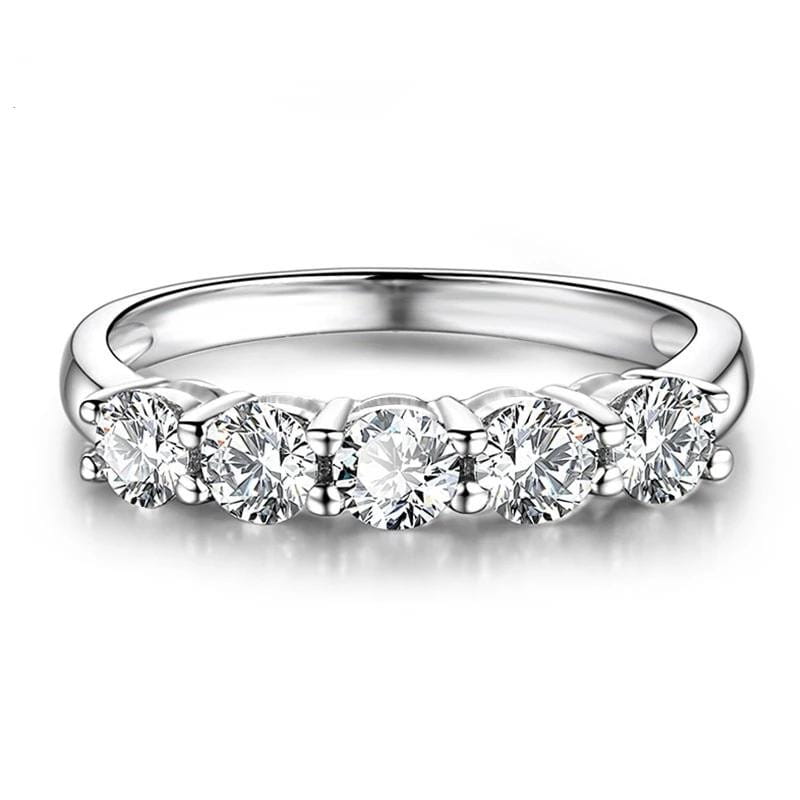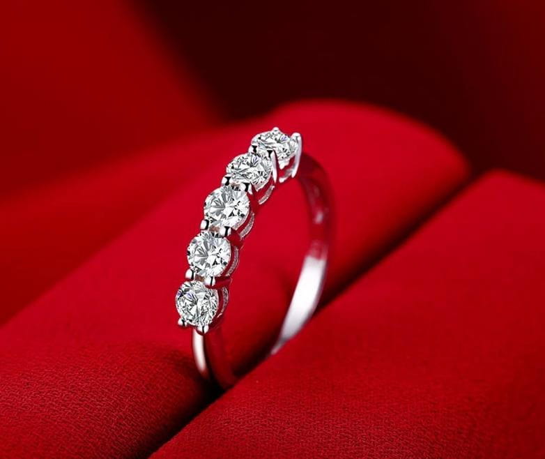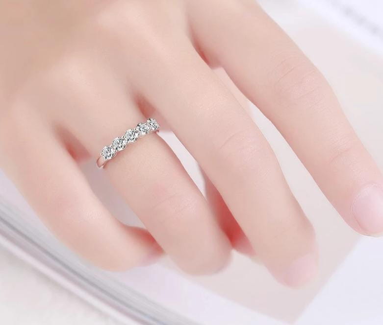 This 5 stone moissanite ring is a classic. You won't be able to find this classic on sale for a better deal anywhere else. We're so sure of it we already looked up the biggest competitors and included them in the images for this ring.