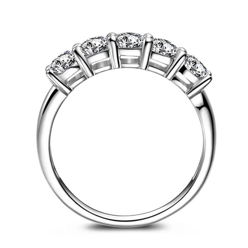 Platinum Plated Silver Moissanite 5 Stone Anniversary Ring 0.55ct