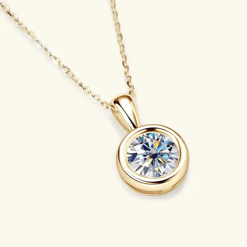 14K GOLD PLATED SILVER BEZEL MOISSANITE PENDANT NECKLACE 2CT SINGLE BAIL LOOP