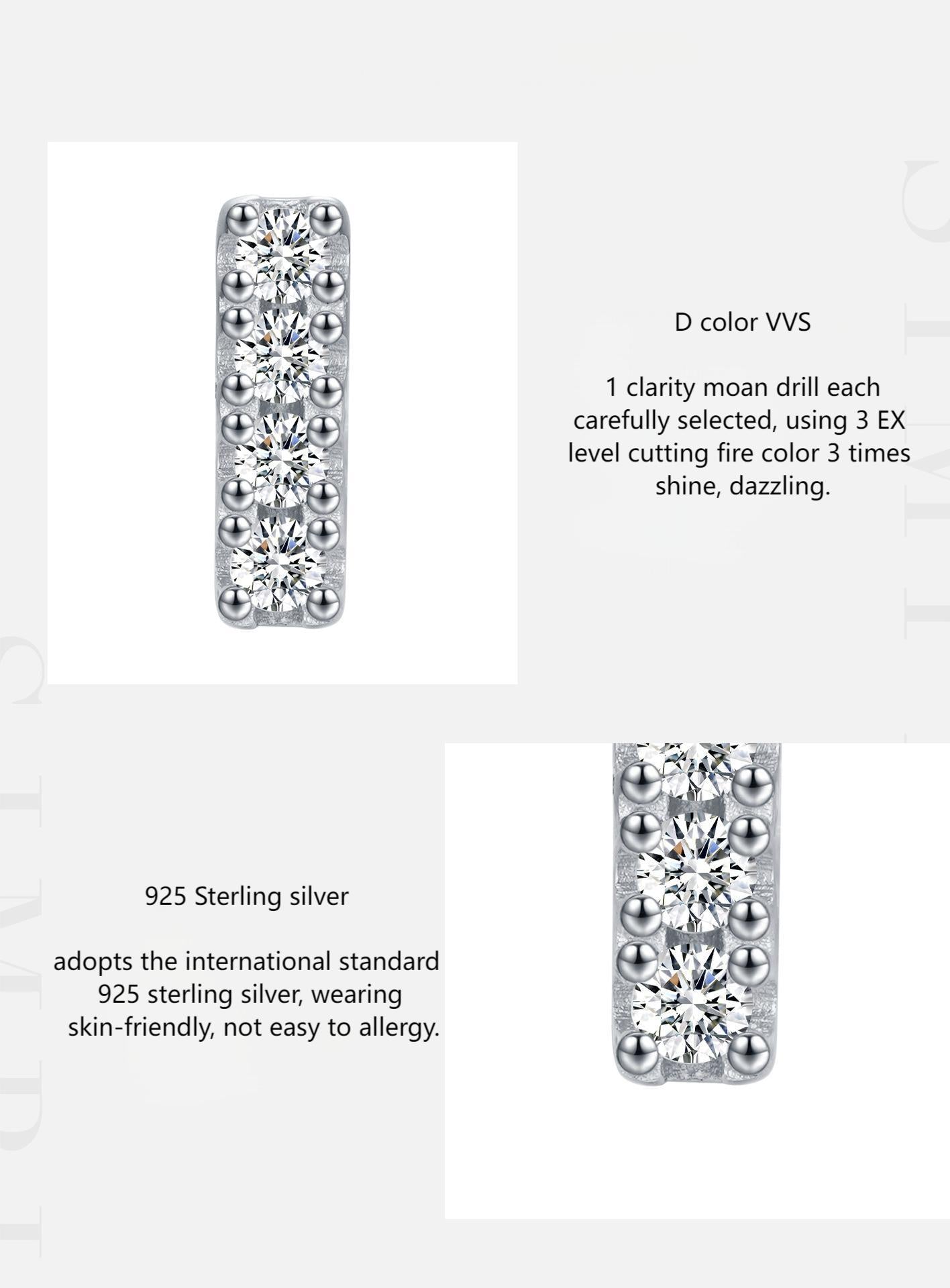 These D-color moissanite earrings are the perfect blend of luxury and elegance. Made with 925 silver, they offer a cool and lightweight feel. The brilliant diamond row adds a touch of exquisite shine, making them a must-have addition to your jewelry collection.