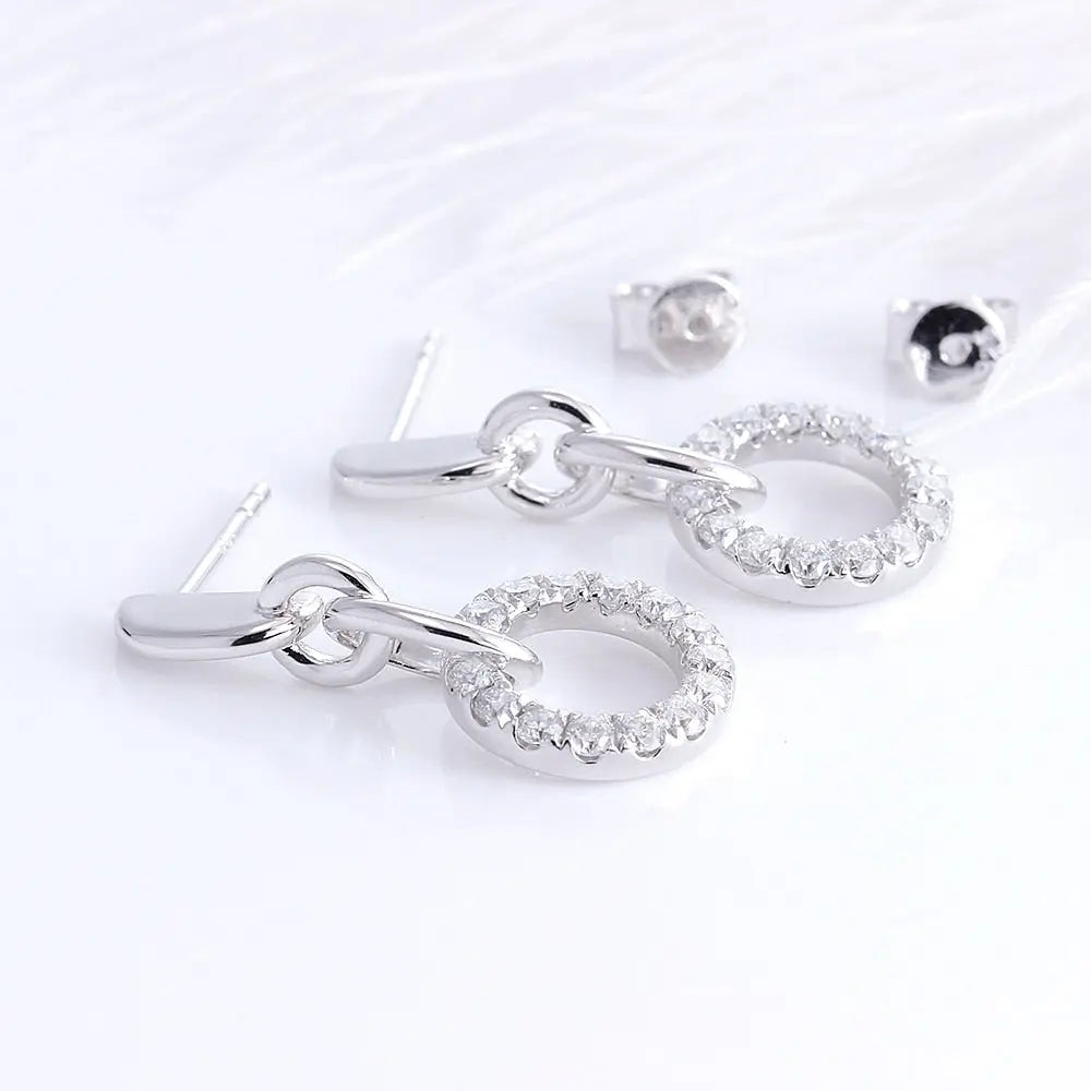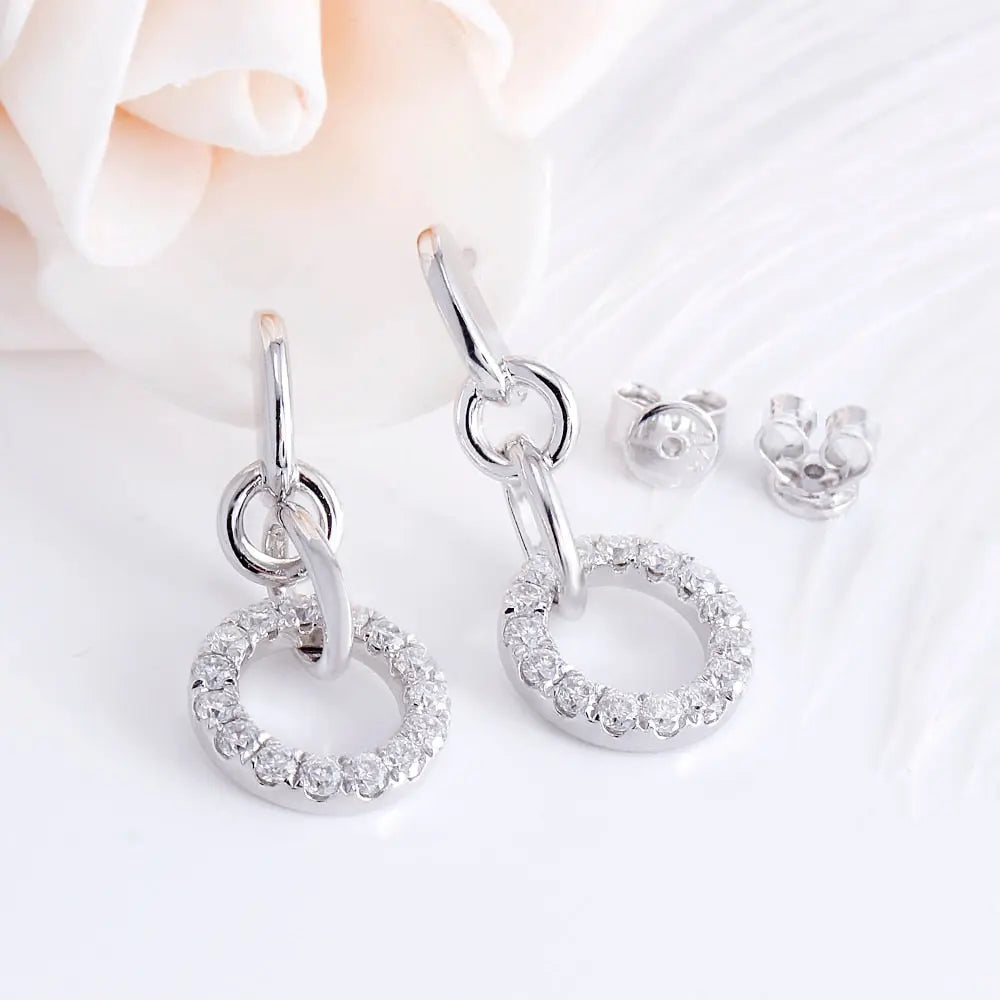 Designed in a charming drop or dangle style. these earrings feature a unique circular design that adds movement and flair to your look. The delicate nature of the Dangle Earrings makes them versatile. allowing you to pair them with various outfits. from casual to evening wear. Their lightweight construction ensures they are comfortable to wear for extended periods. making them ideal for all-day elegance.