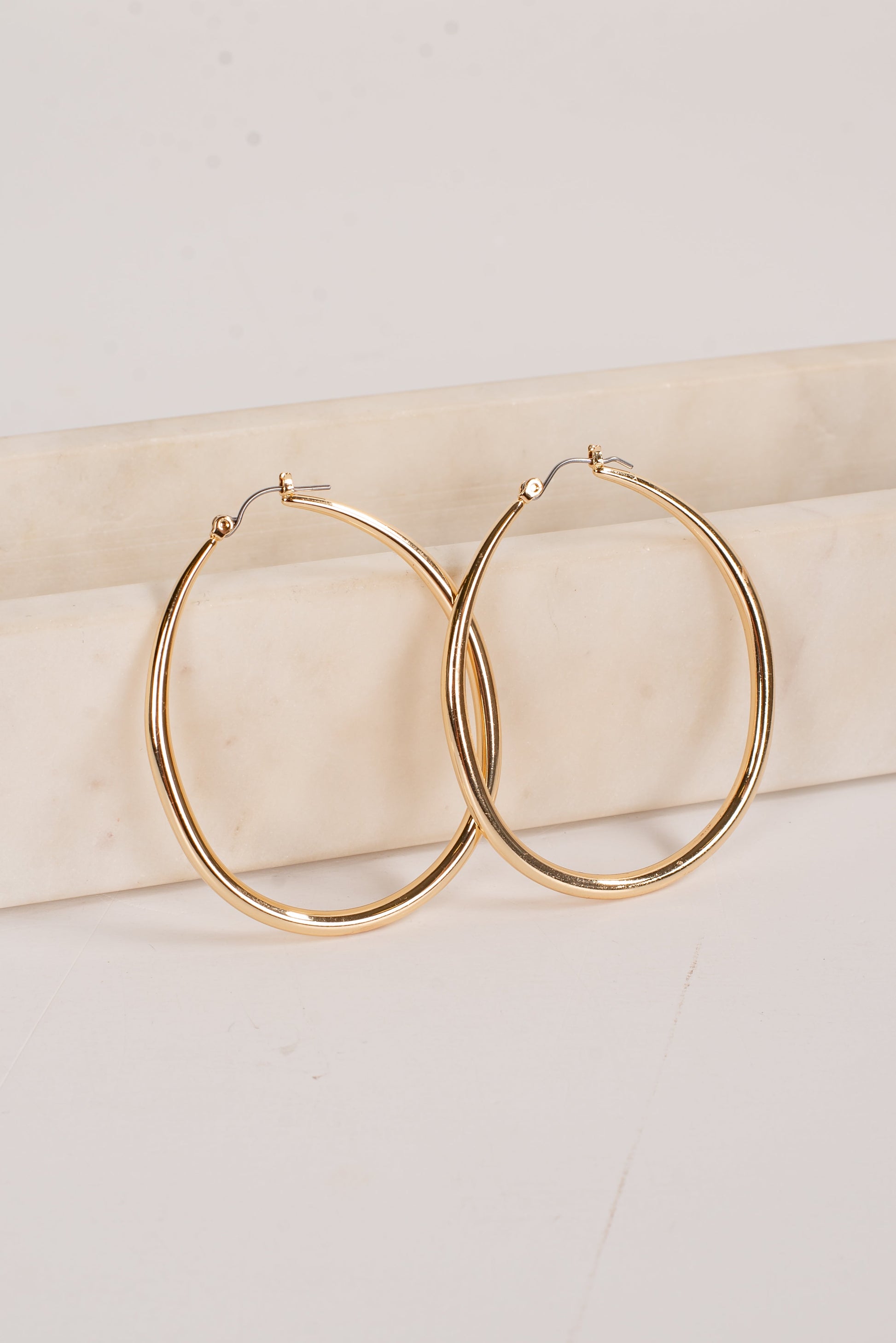 Stylish yet unique. the Gracie Gold Oval Hoop Earrings will have everyone lining up to give you a compliment about your accessorizing skills! These chic earrings feature a lever back with an oval hoop design. Style the Gracie Earrings with anything from dresses to denim for an elevated look!