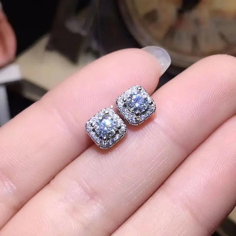 Crafted from durable 925 silver and finished with a layer of platinum plating. these earrings are designed to last while maintaining their luxurious shine. The hypoallergenic metal ensures comfort for sensitive ears. allowing you to wear them all day without irritation. The classic stud style. enhanced by the halo design. adds an extra layer of sophistication. making these cute earrings a versatile accessory that complements any outfit.