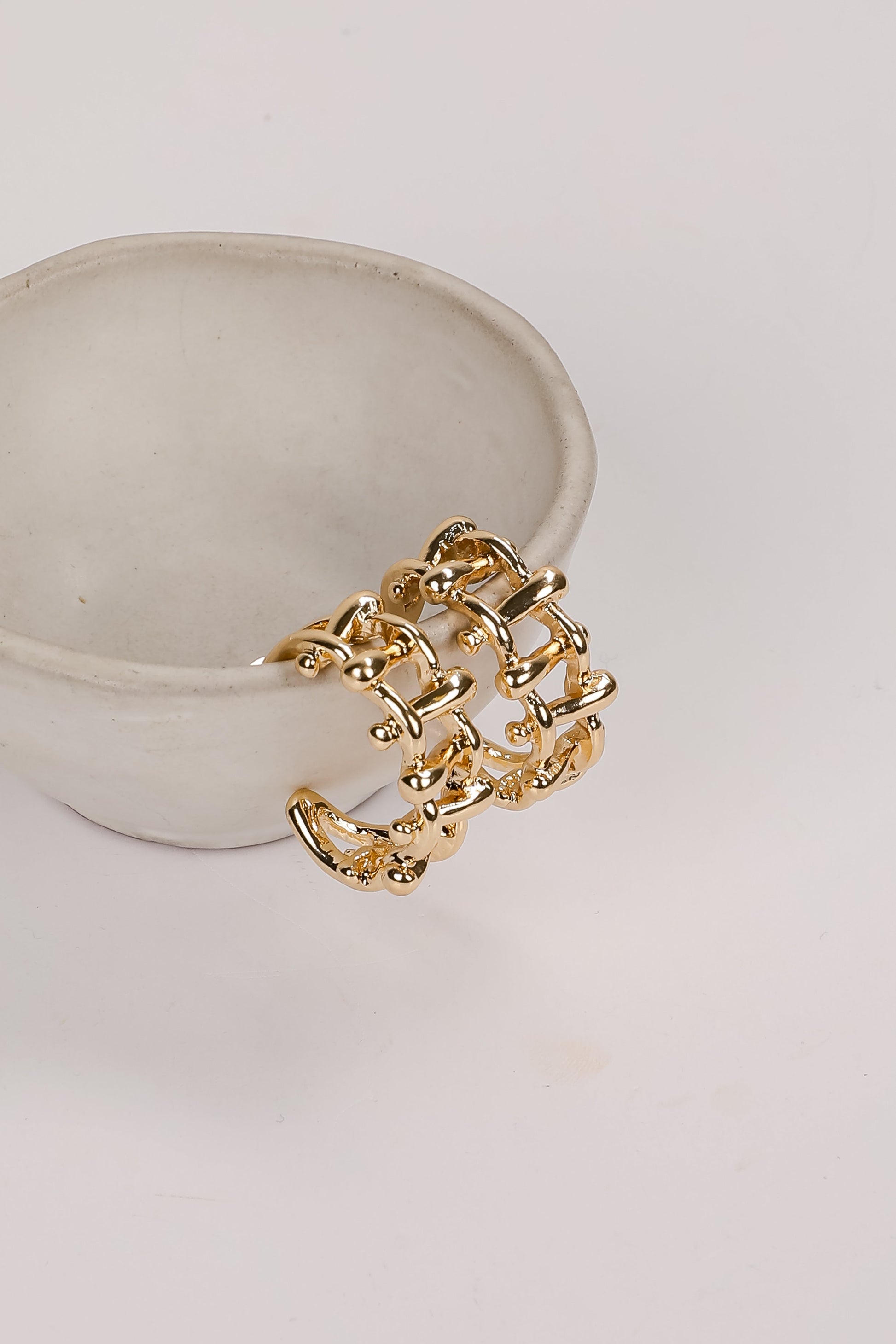 A little extra shine never hurt nobody. especially when it comes in the form of the Maggie Gold Chainlink Hoop Earrings! These chic earrings feature a stud post back with a chainlink hoop design. Style the Maggie Earrings with anything from dresses to denim for an elevated look!