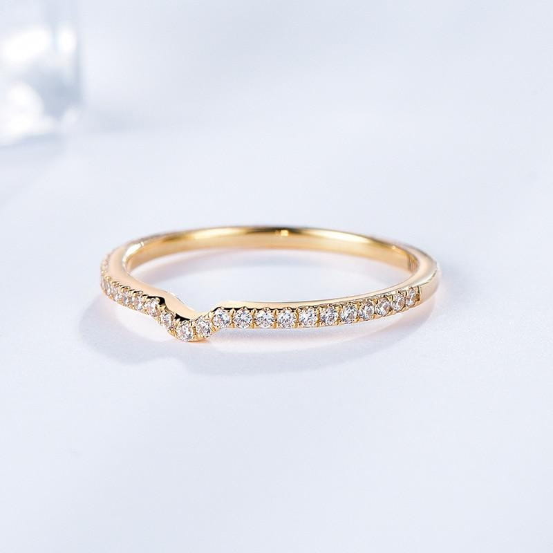 You can't go wrong with this moissanite half eternity / wedding band. It goes great with an engagement ring. hence the slight curve to make room for an engagement ring. Grab this for yourself or someone you love.
